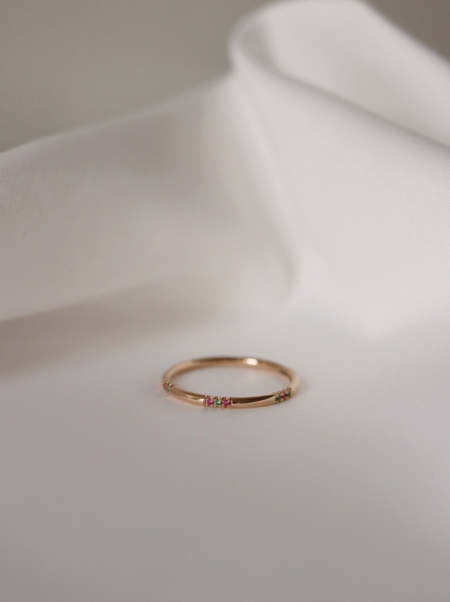 Inre Frid - Three Dots Spread Around Ring med gröna turmaliner och rosa safirer