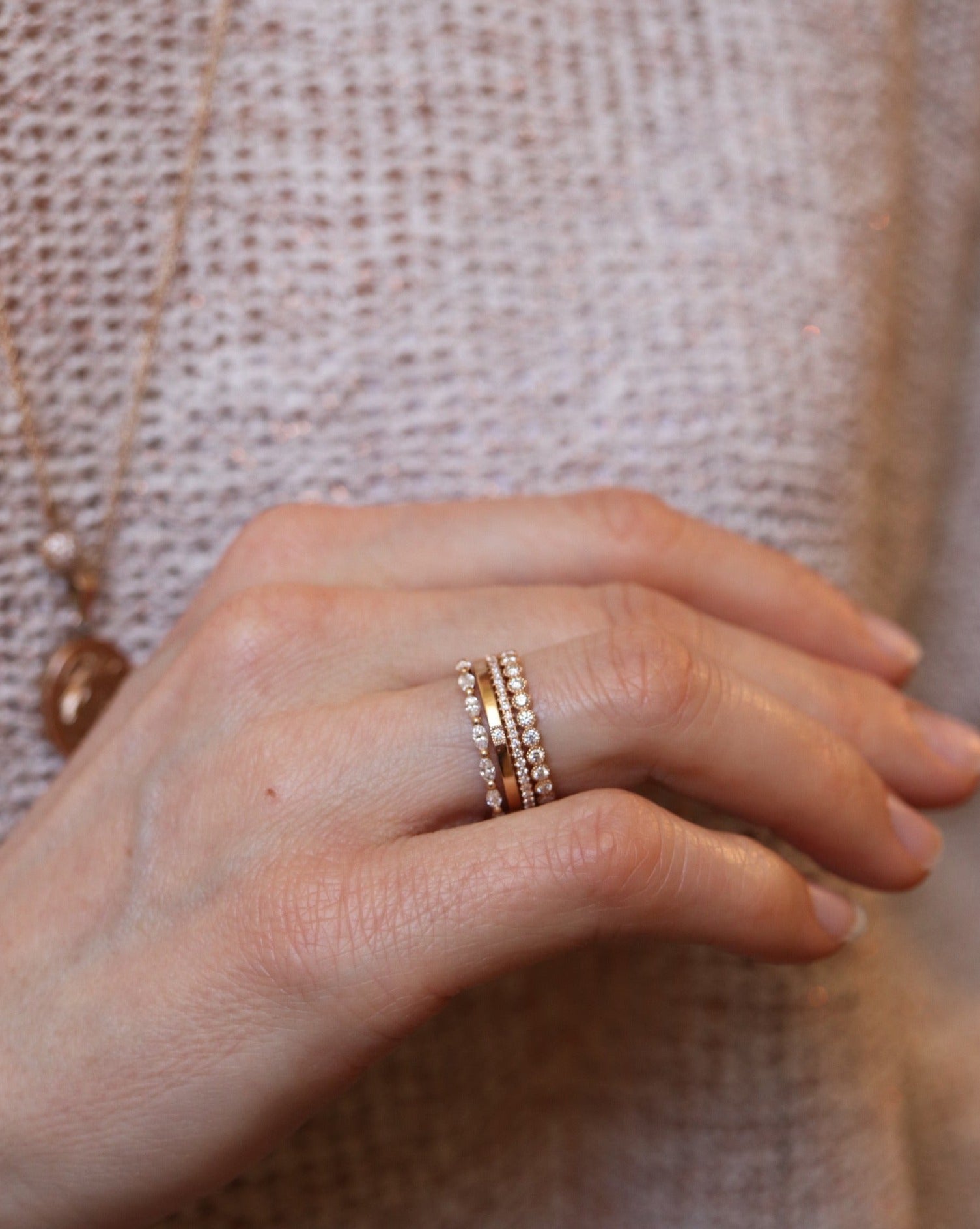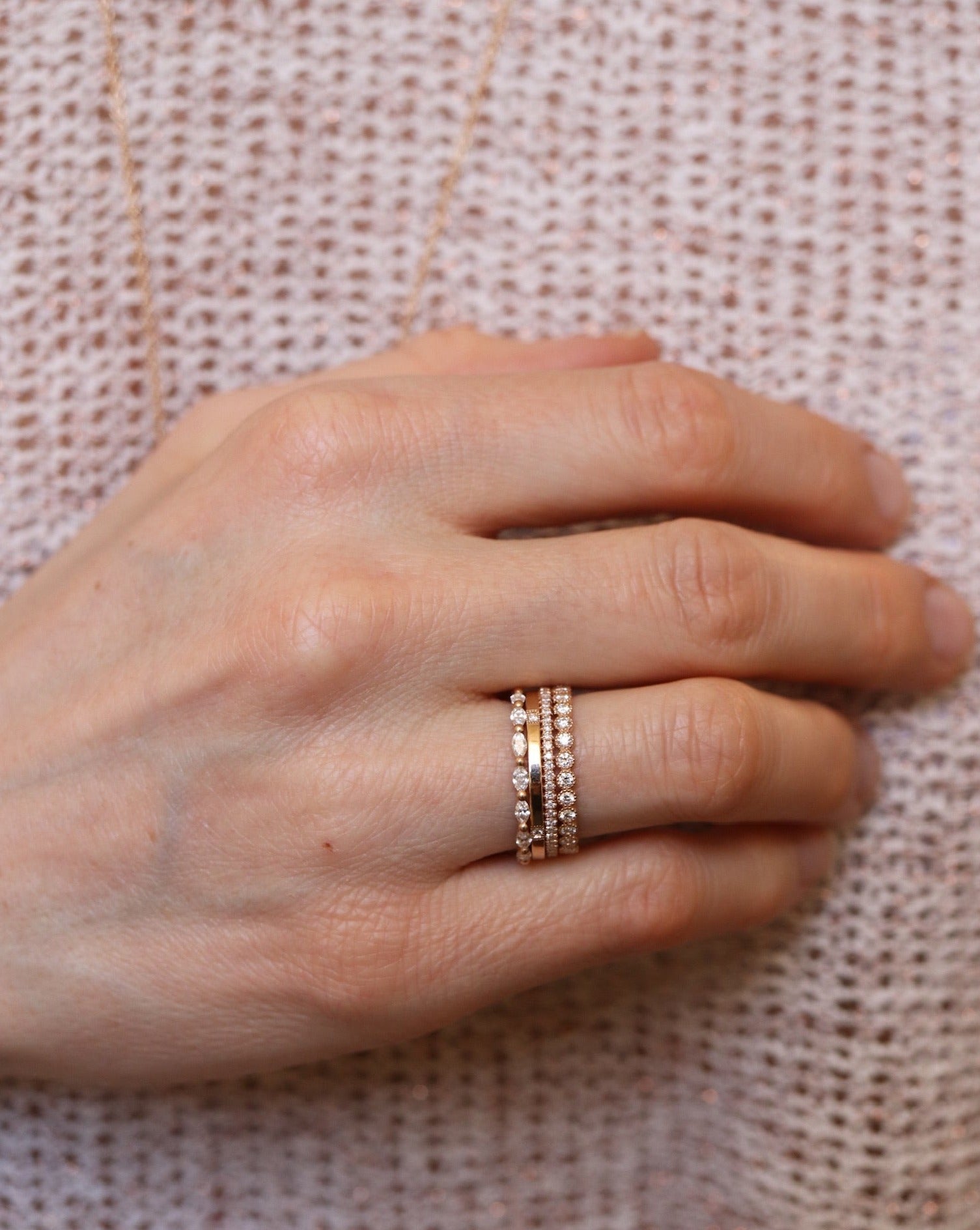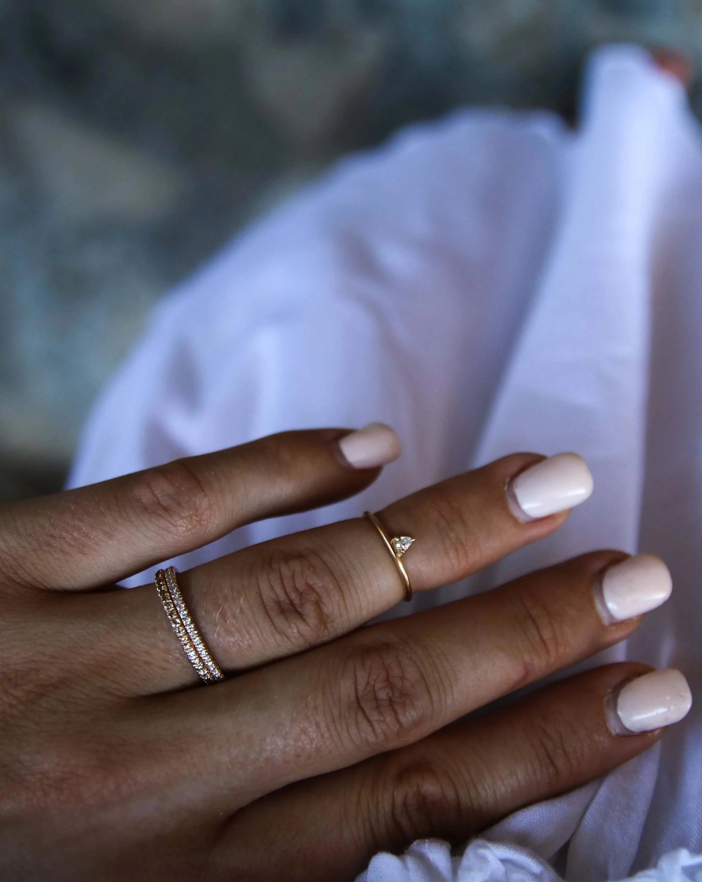 I love the Jade Petite Ring and I think it's the perfect minimal eternity band! I think that anyone who loves rings should have at least a few Jade Petite Rings in their jewelry collection. It acts as the perfect bridge between all your other rings. Preferably one with all white diamonds - and the others in your favourite colors. I wear at least one Jade Petite Ring in some color every day, regardless of what other jewelry I wear for the day! XX Cecilia