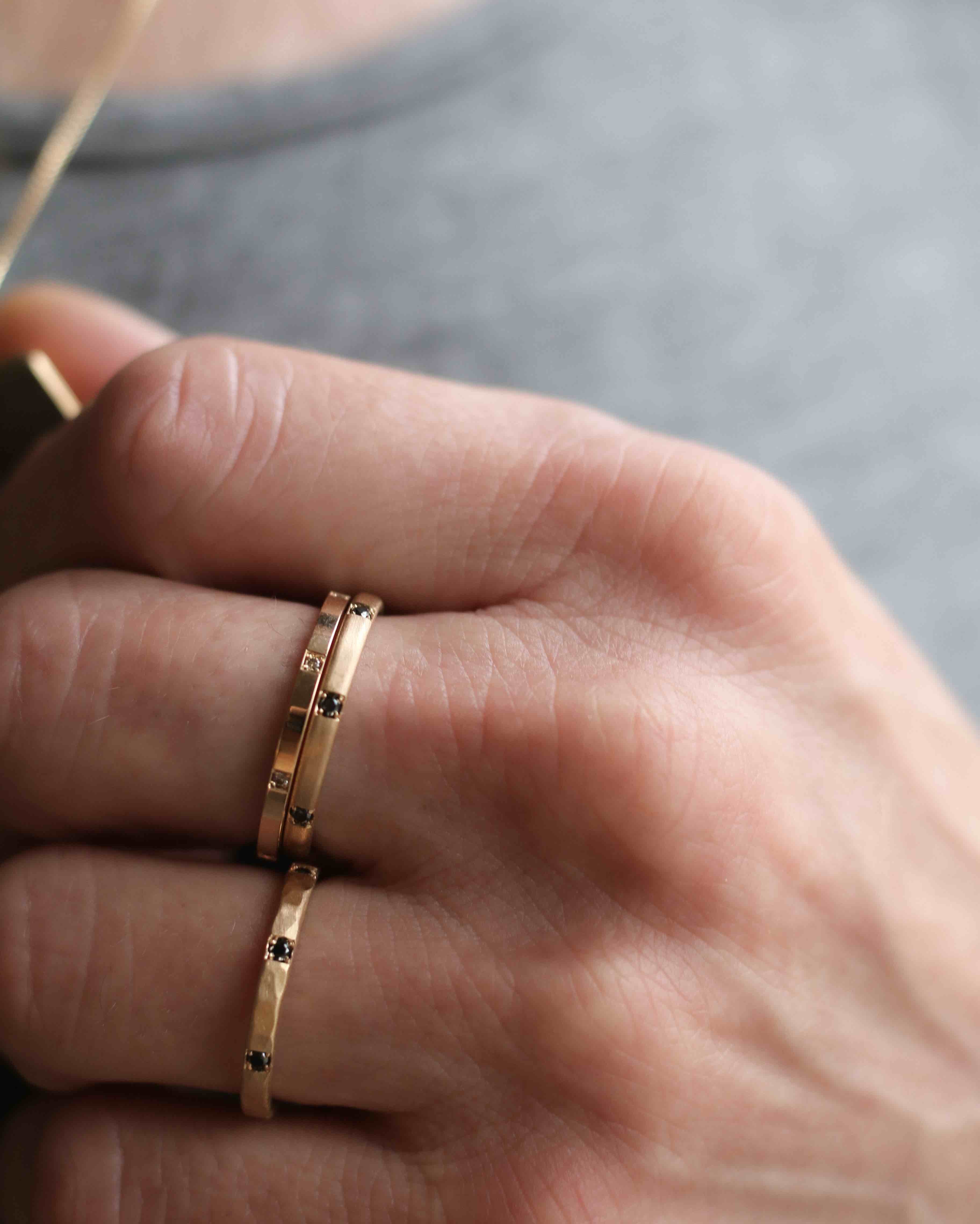 Logan Eternity Band is a relatively narrow ring, only 2.5 mm wide, but thanks to its rustic surface and ample height, it feels solid and is incredibly comfortable to wear.