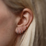 The diamond huggie is a key piece of my capsule jewelry wardrobe. I never take mine off! I wear a 4 mm in the fourth hole of my left ear. /Cecilia