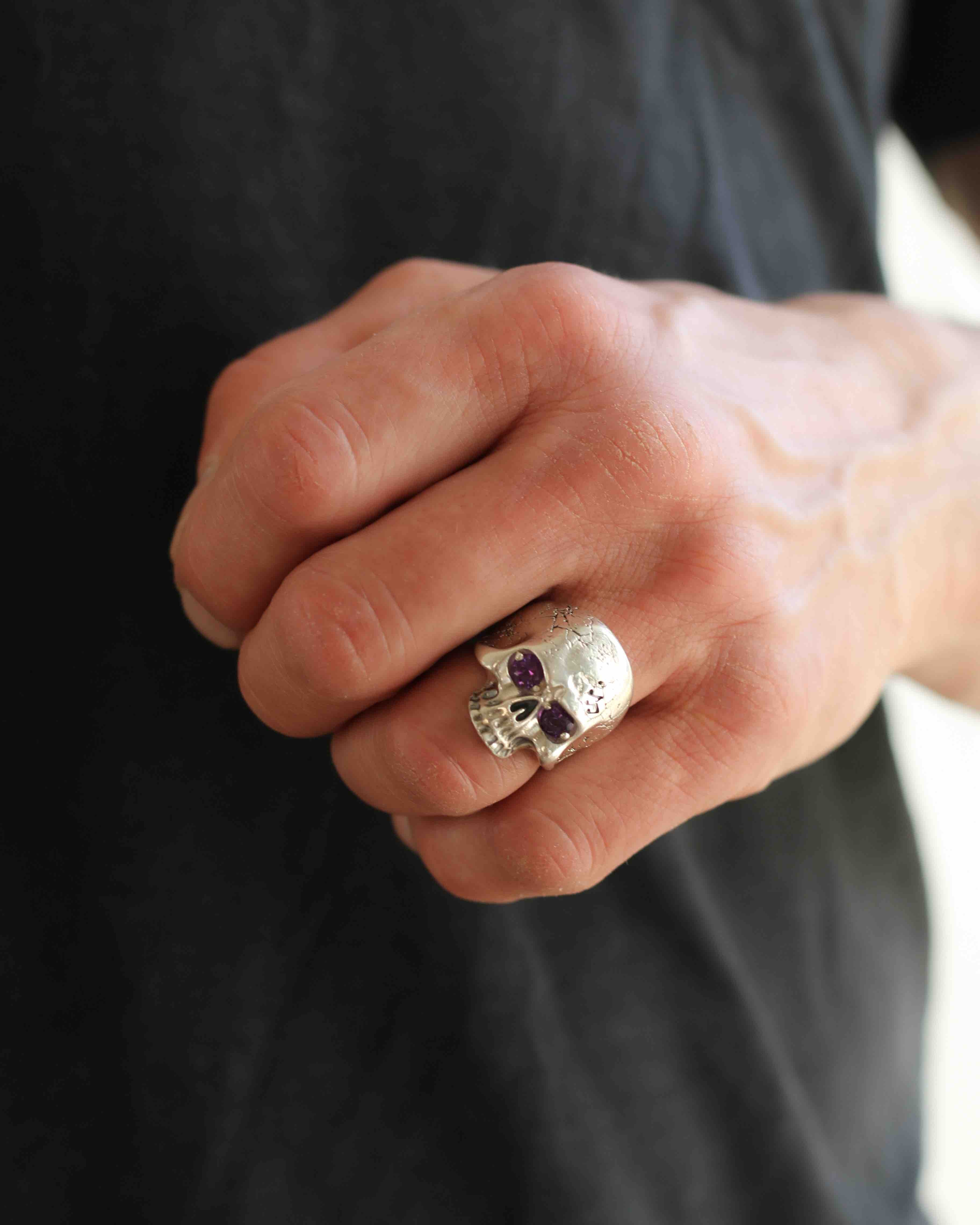 Til Death Do Us Apart - Skull Ring with Amethysts
