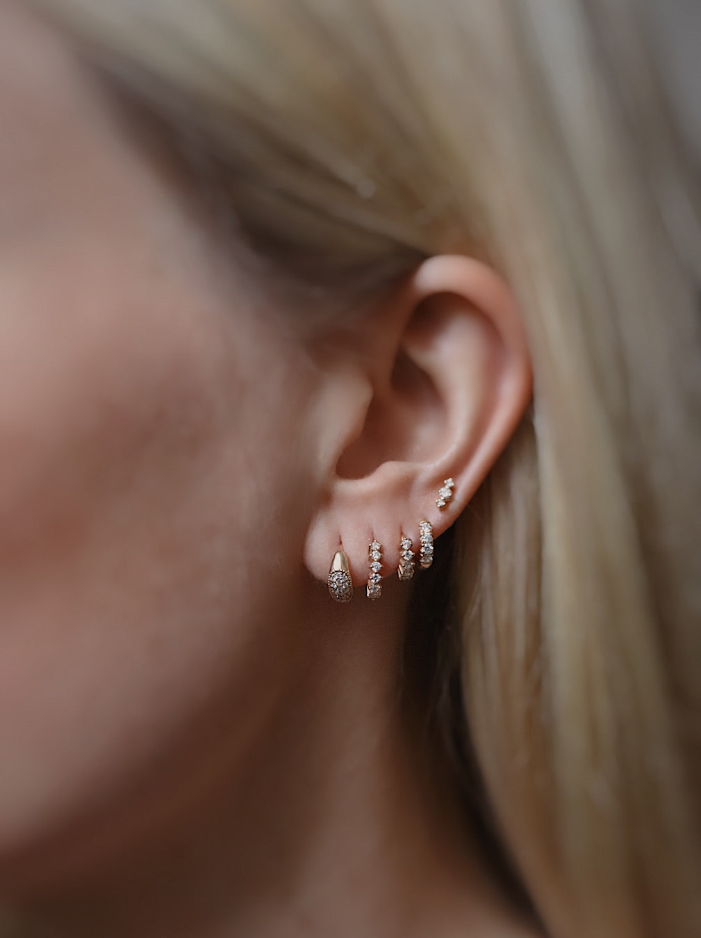 Huggies are small hoop earrings that are designed to "hug" your ear. They are wonderfully comfortable and often it becomes the jewelry you never take off!