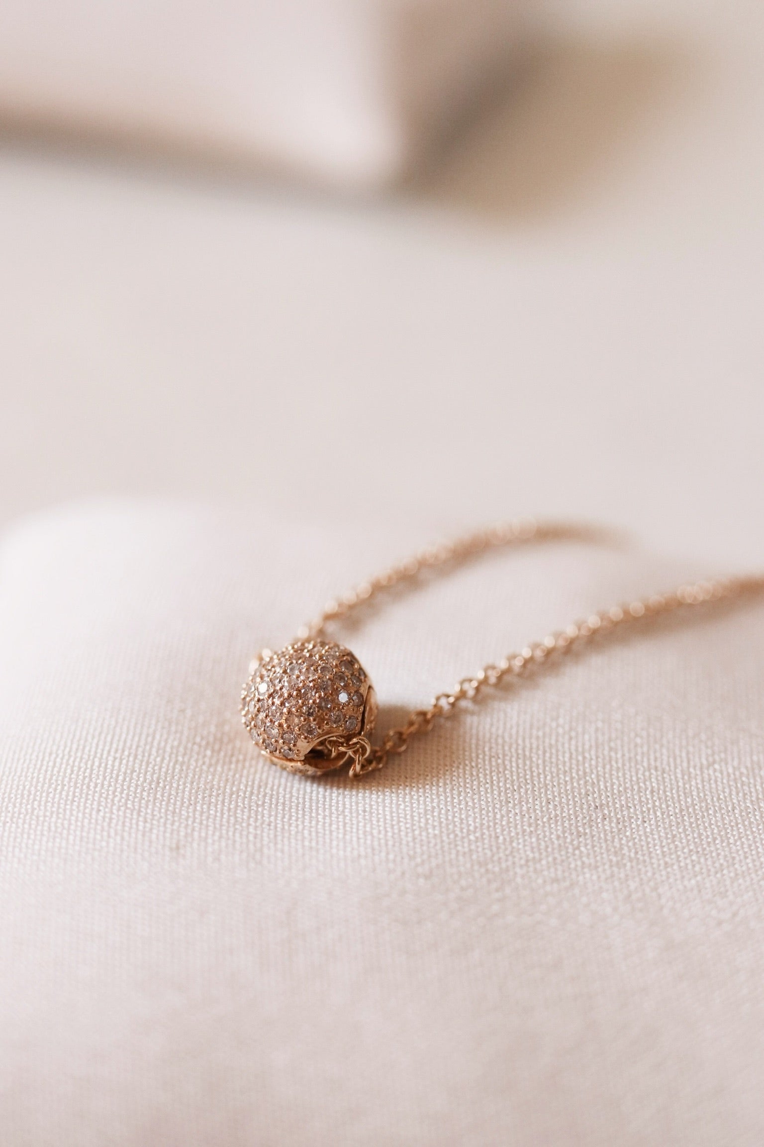 She has hung a vintage pendant on her Gaia Diamond Necklace!