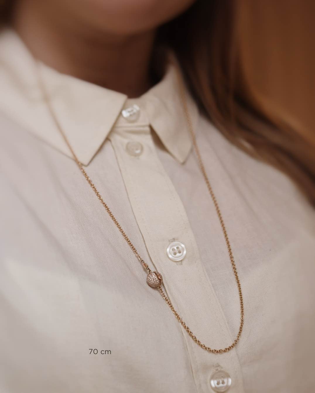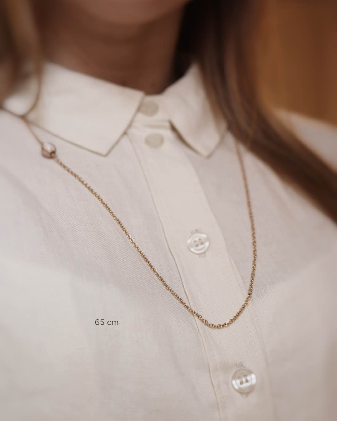 Below you see Helena wearing the beautiful and minimalistic 2 mm chain in GAIA necklace.