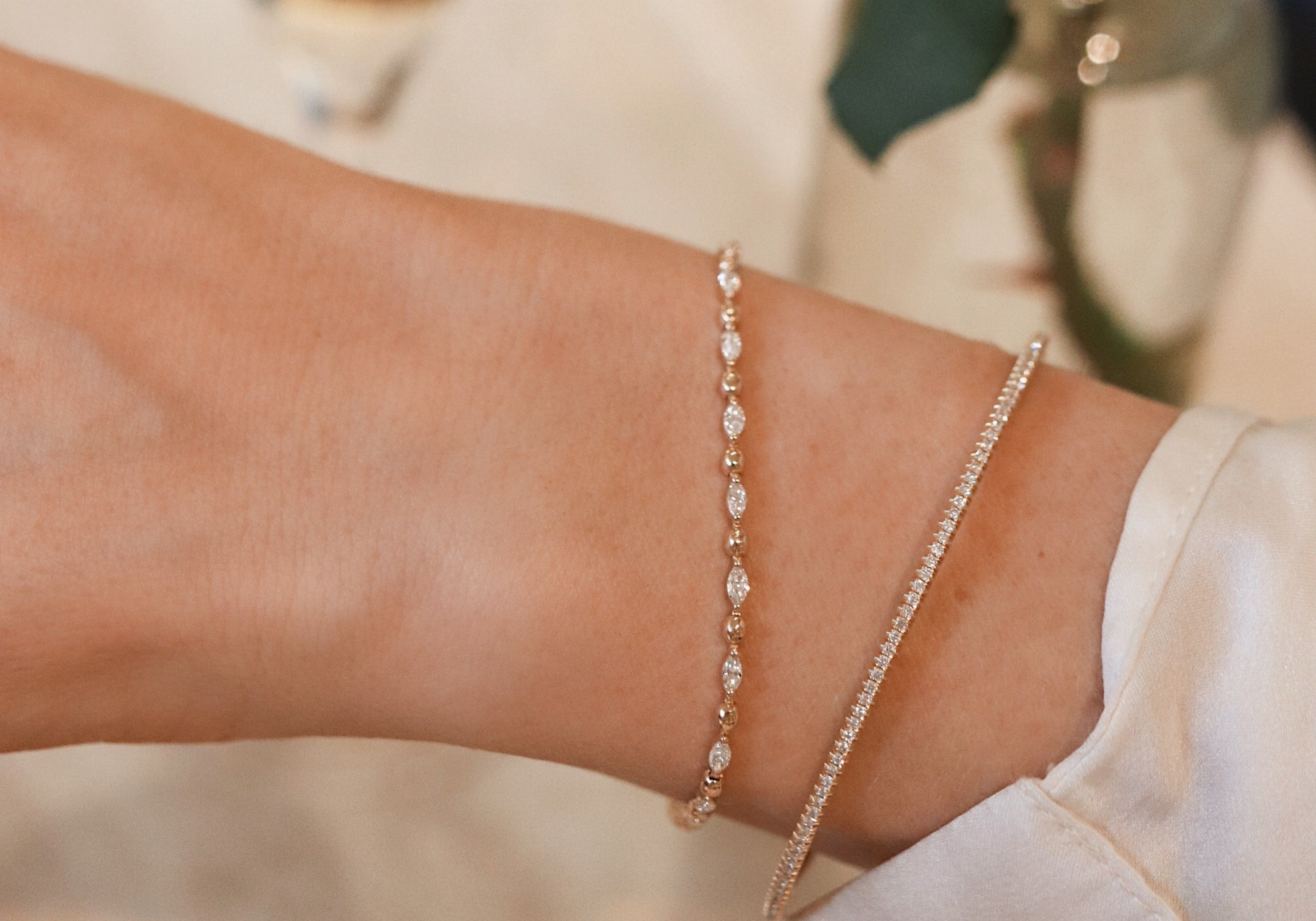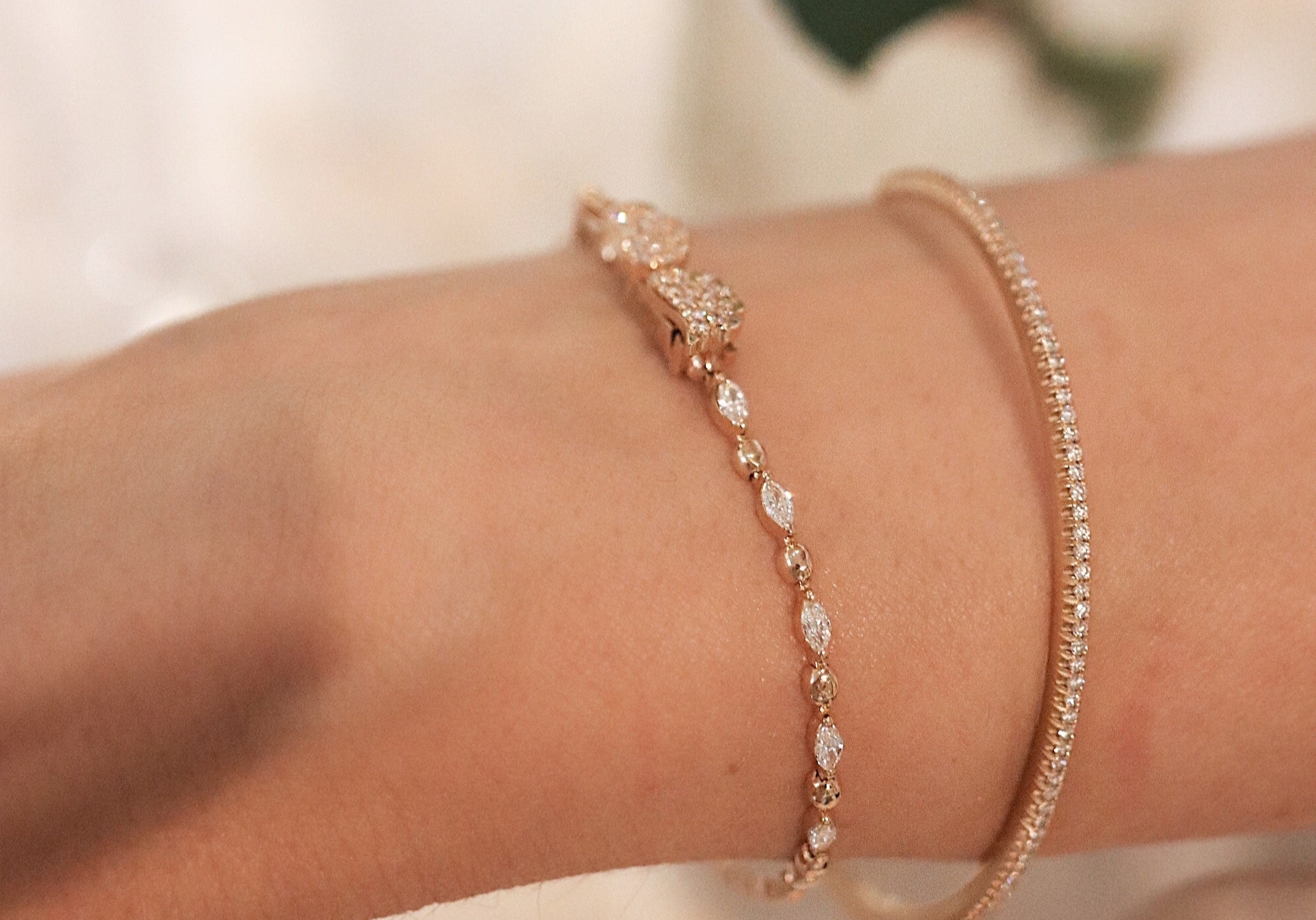 Tennisarmband med marquiseslipade diamanter och guldkulor
