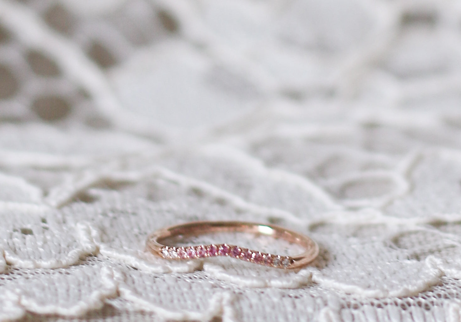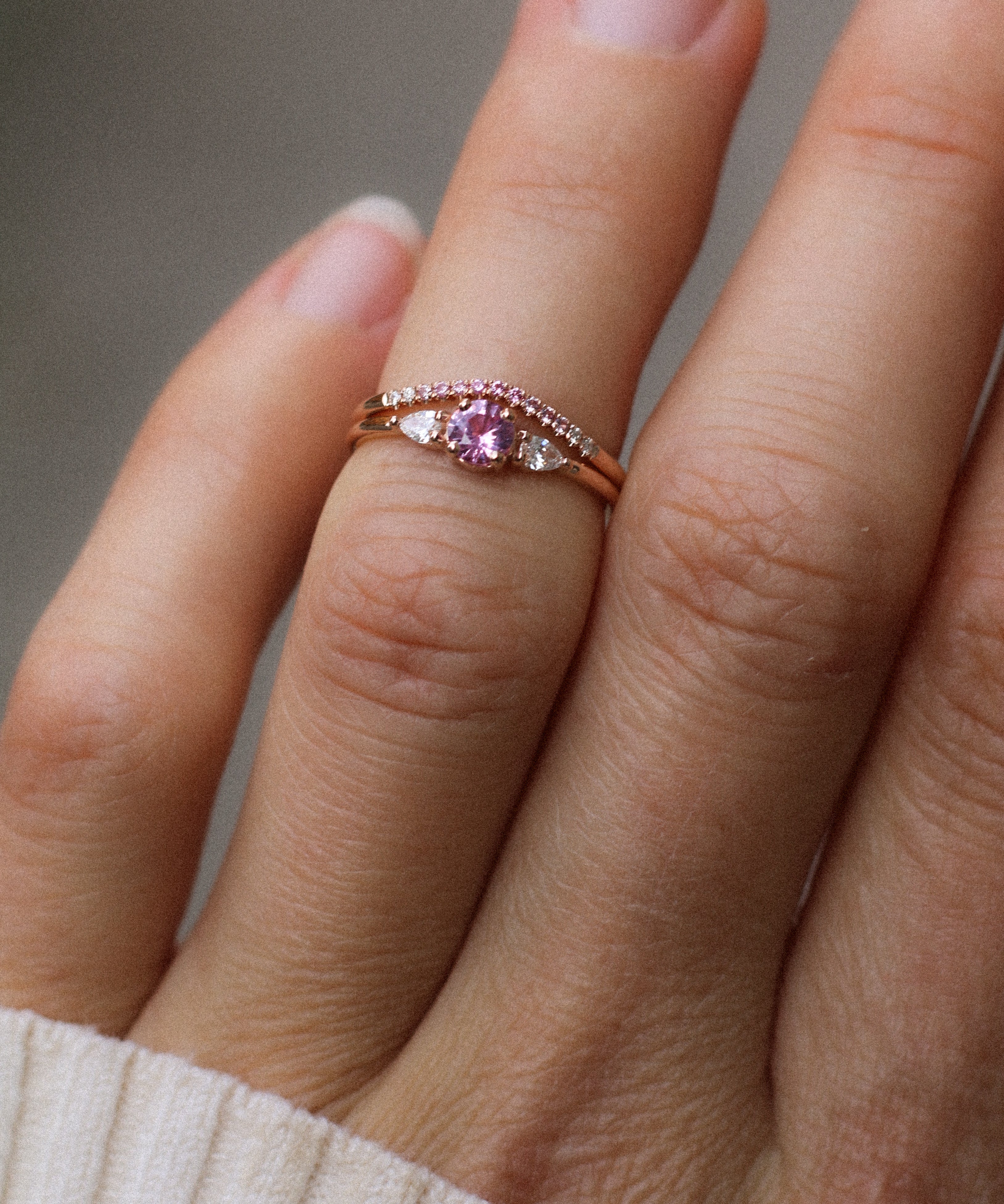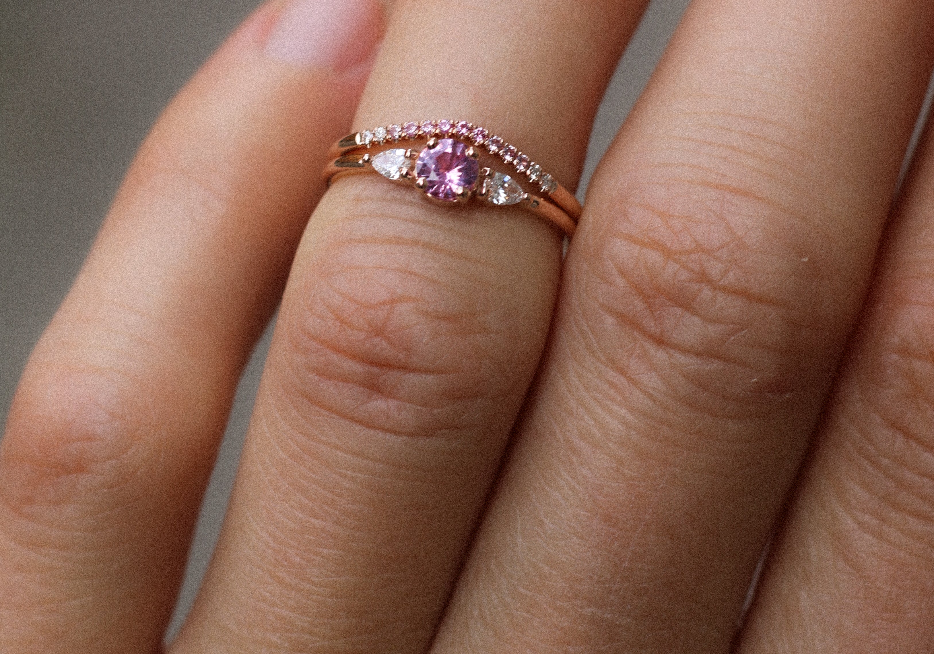 Förlovnings- och vigselring till en kvinna som älskar rosa.