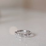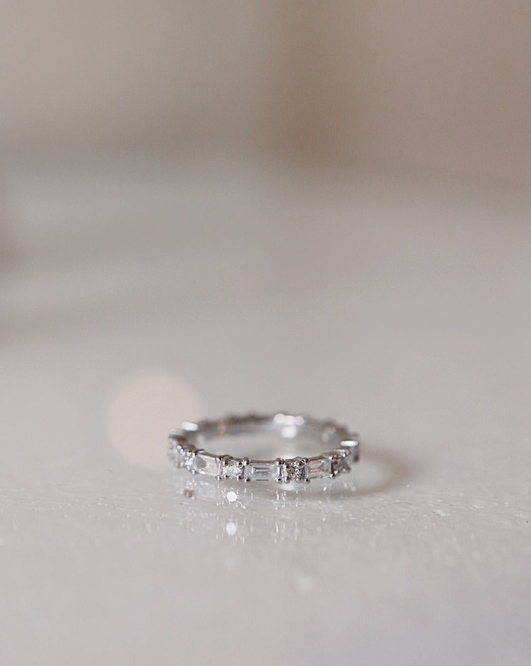 Amelia came to us and wanted a unique but still minimalistic wedding ring. She likes a more edgy feel with a contrast between soft and hard - so together with Amelia we decided to go for an eternity band with alternating round brilliant-cut and baguette-cut diamonds. I love how it turned out! I have been longing to design one and put in the collection, and Amelia gave me the perfect reason to create the first one. Now I want my own! Love Cecilia