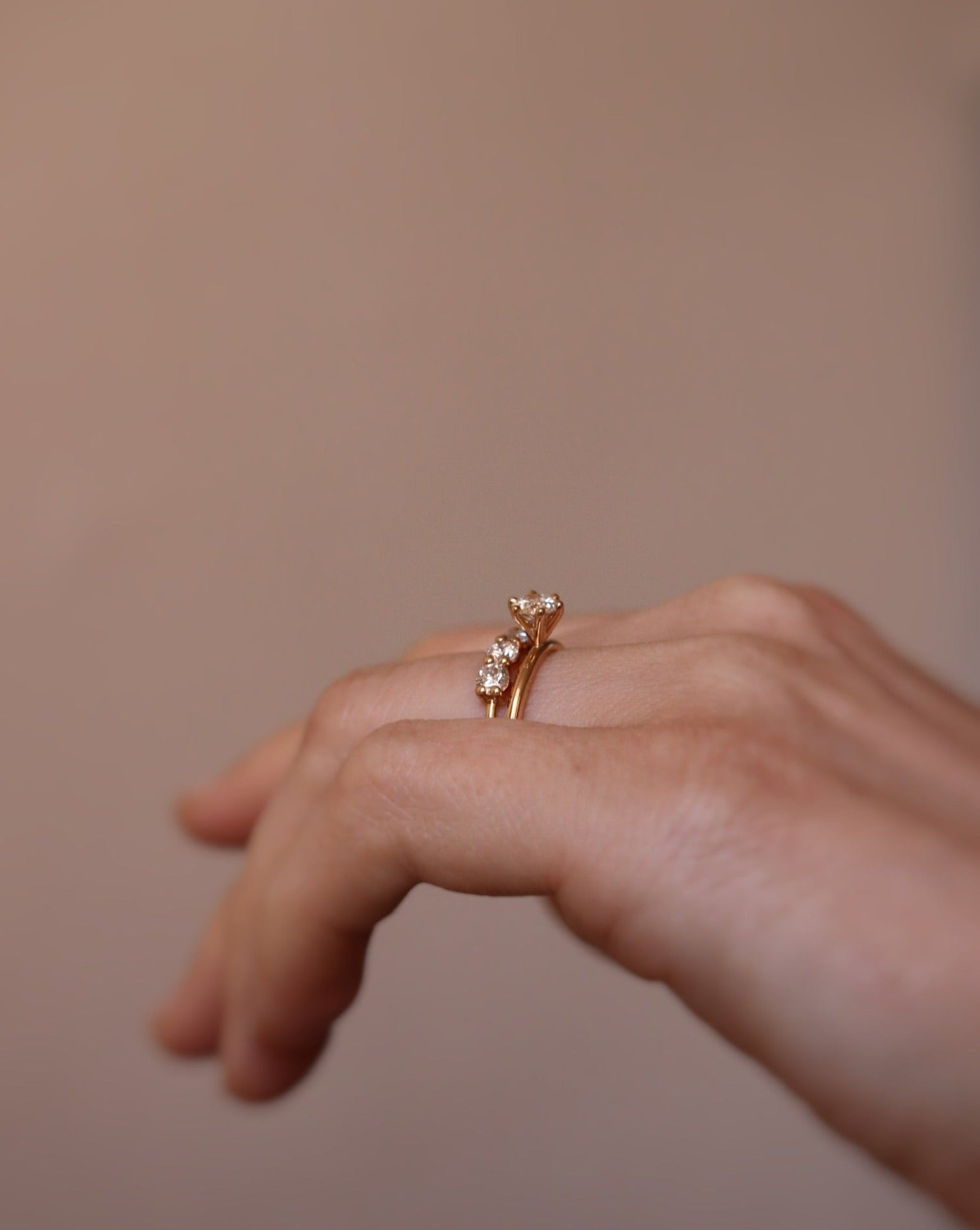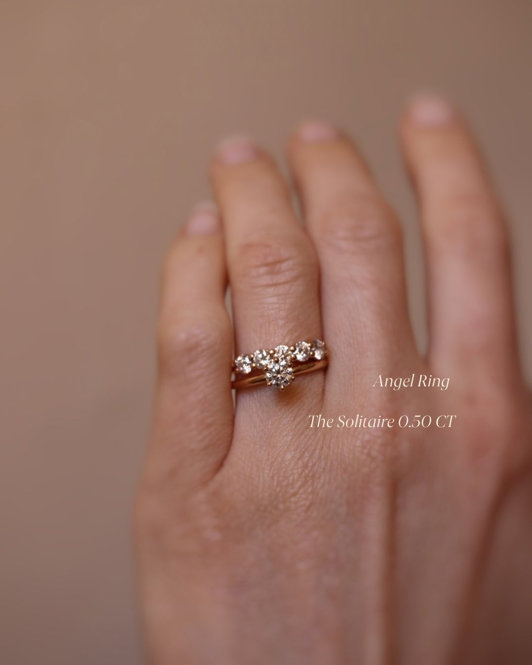 The five diamonds symbolize angel number five - which is about positive change, health and wellbeing. It's about attracting important and positive experiences into your life. Five – the symbol of balance! I first designed it with 1.0 CT, then 1.25 CT sometime after for a friend's wedding.