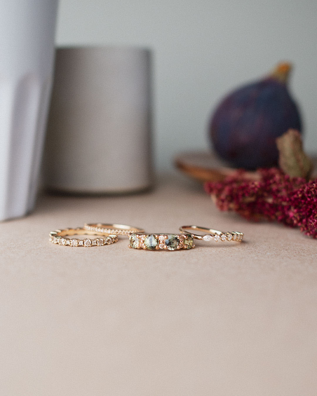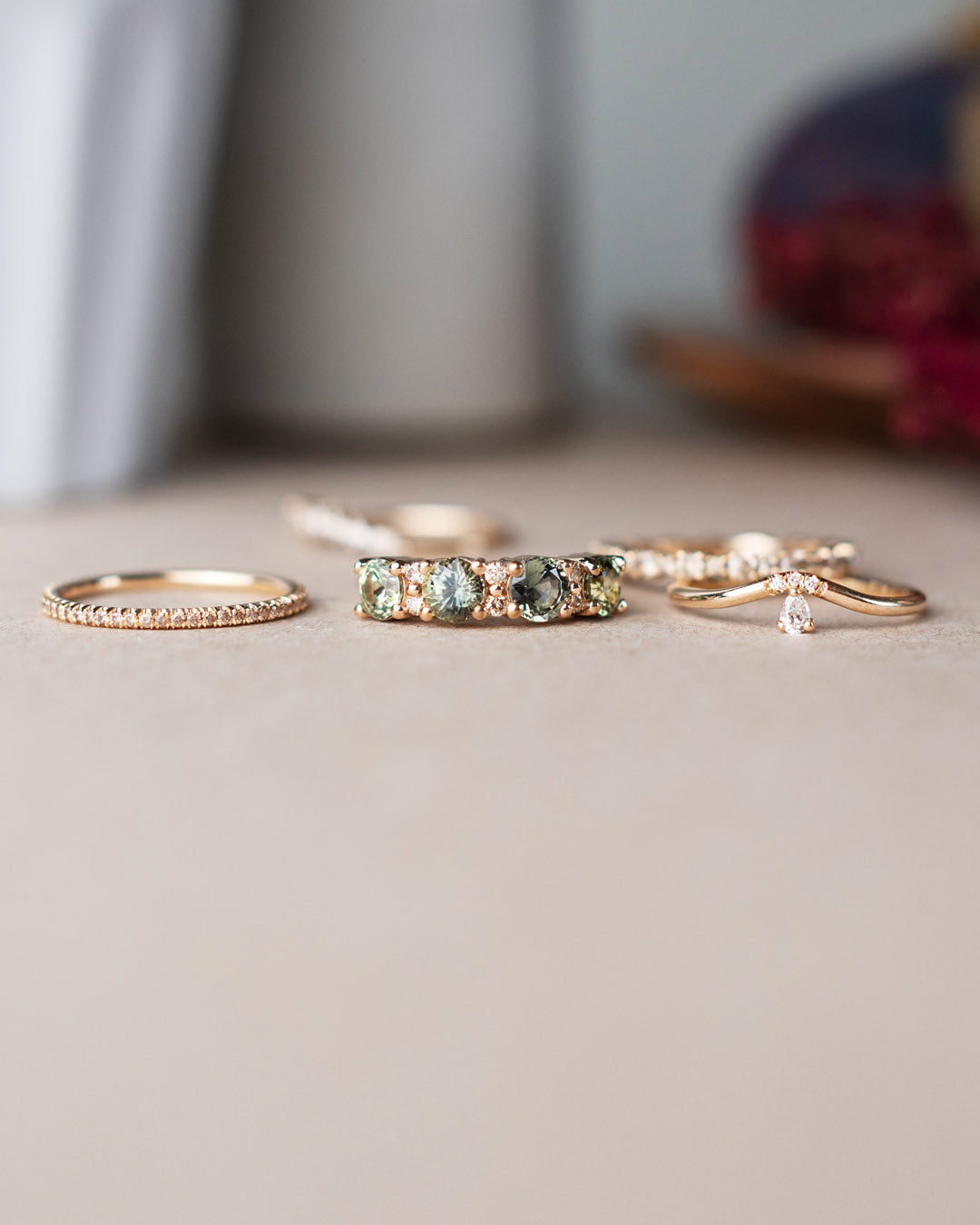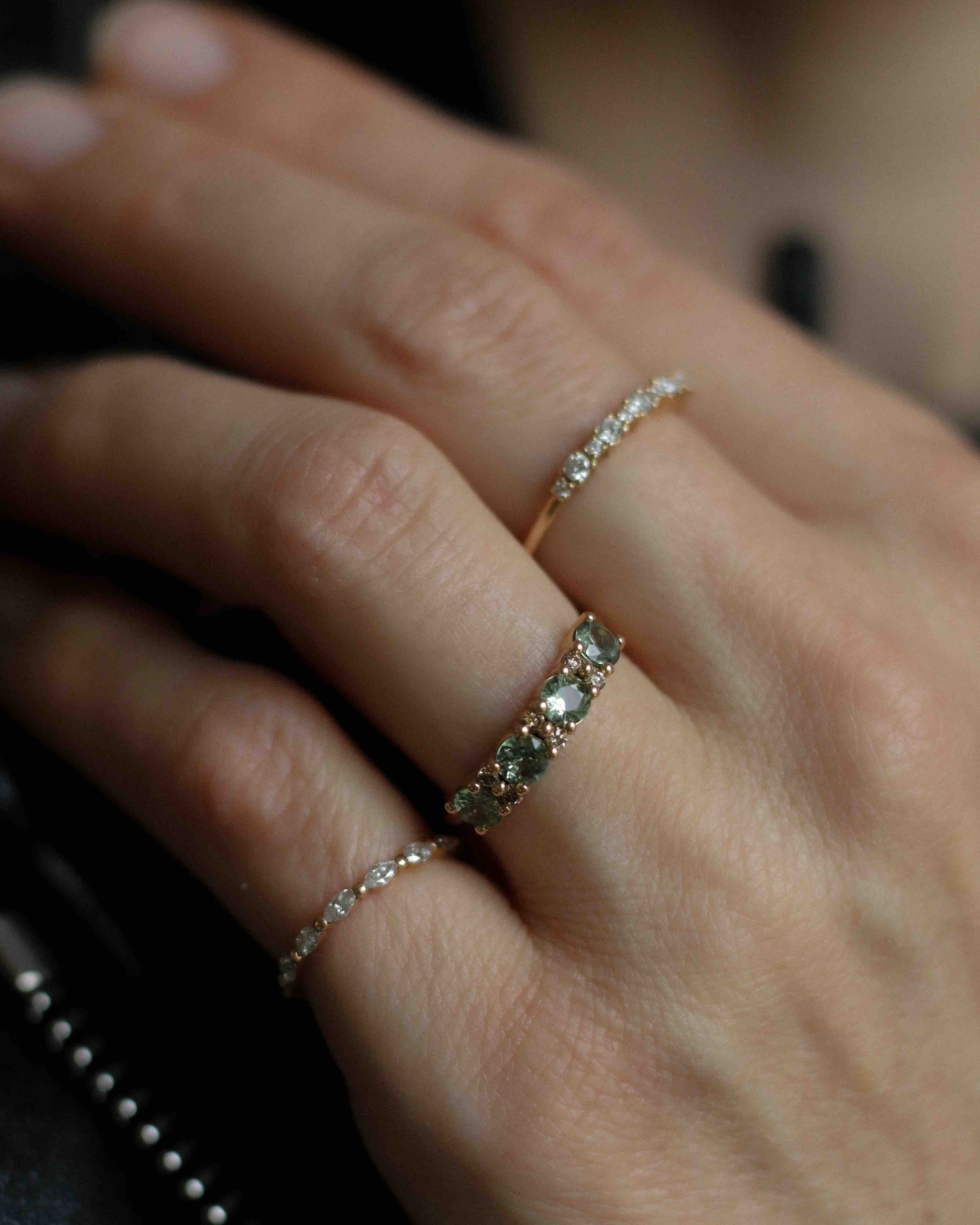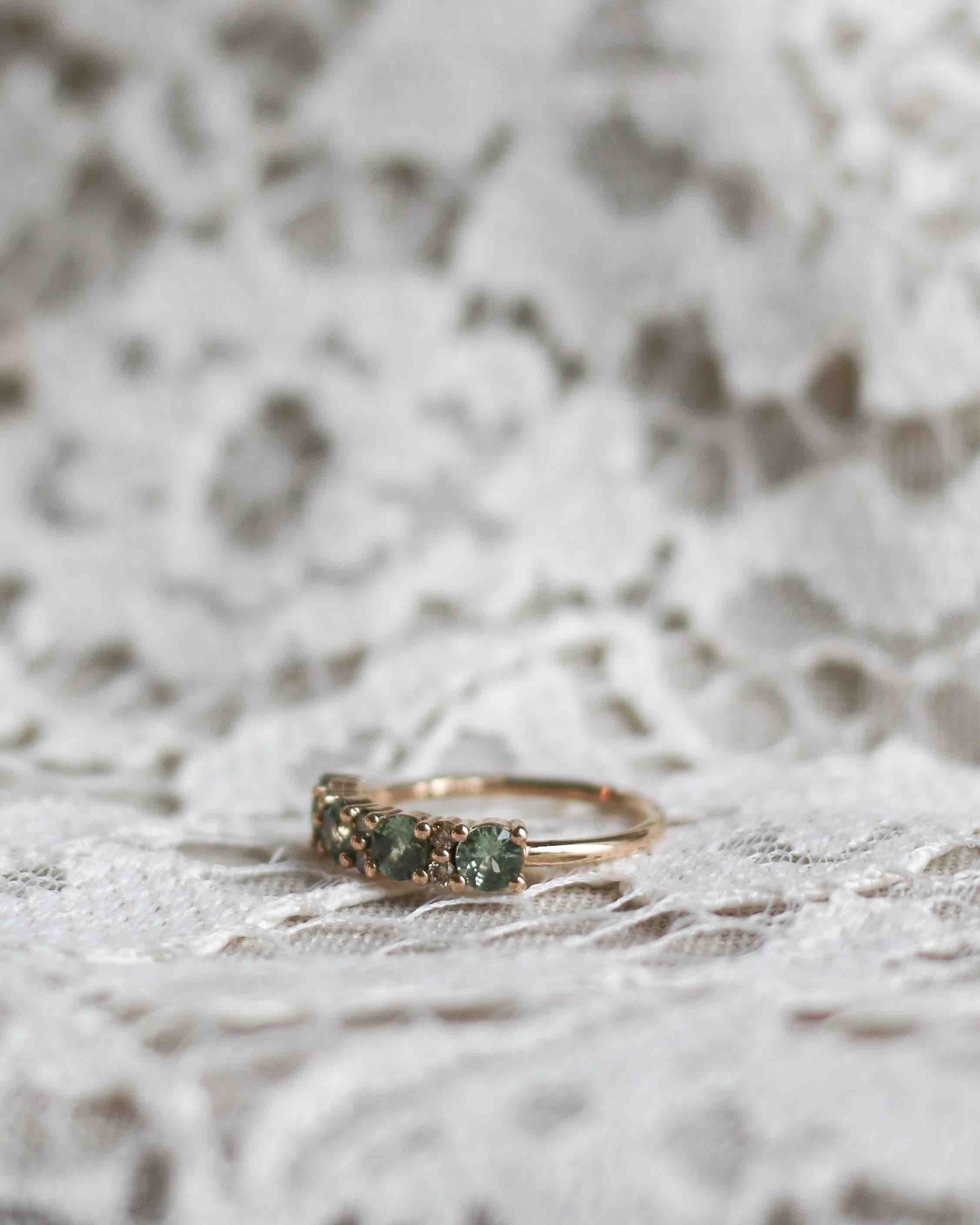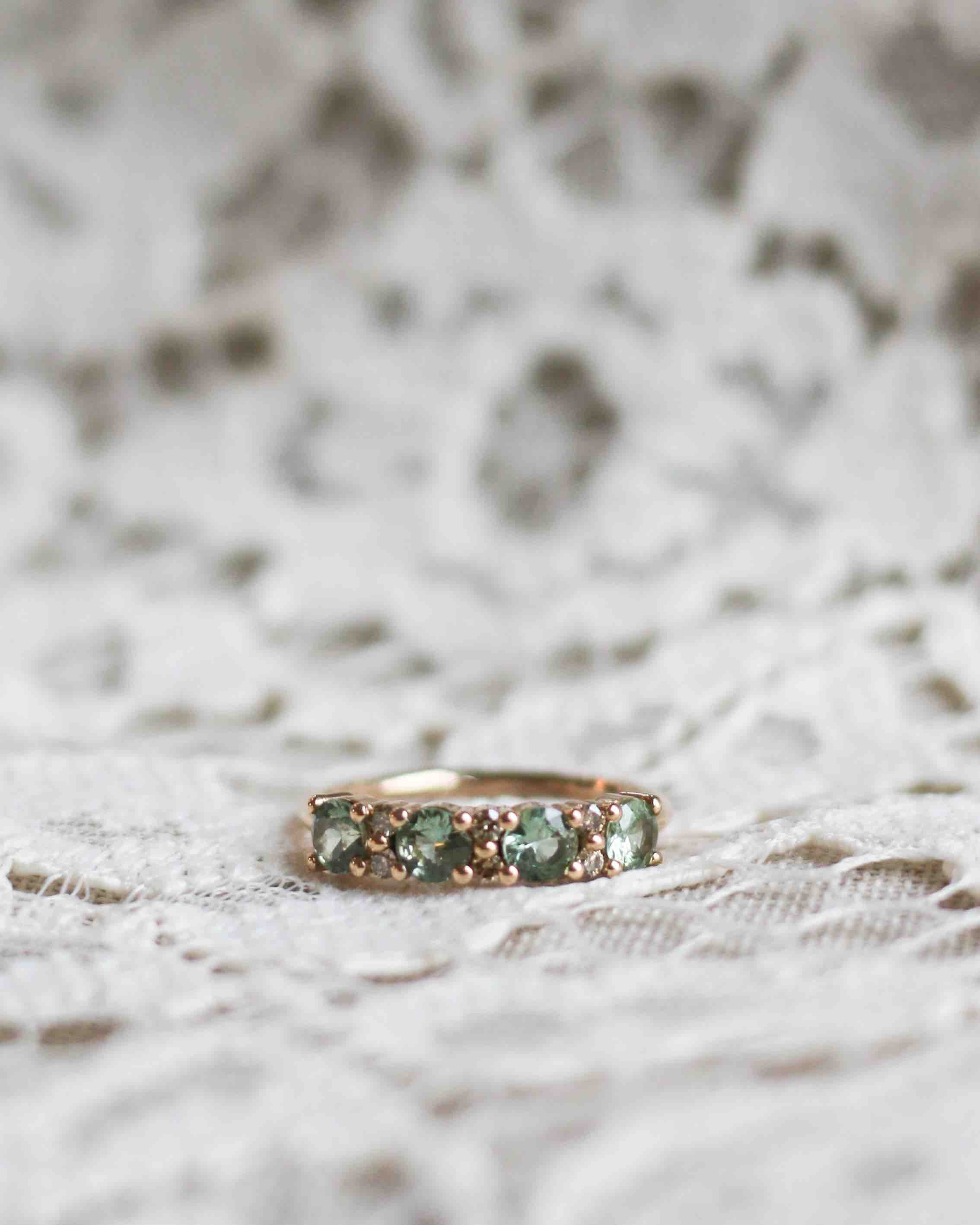 Anita Ring med Olivgröna Safirer och Champagnediamanter