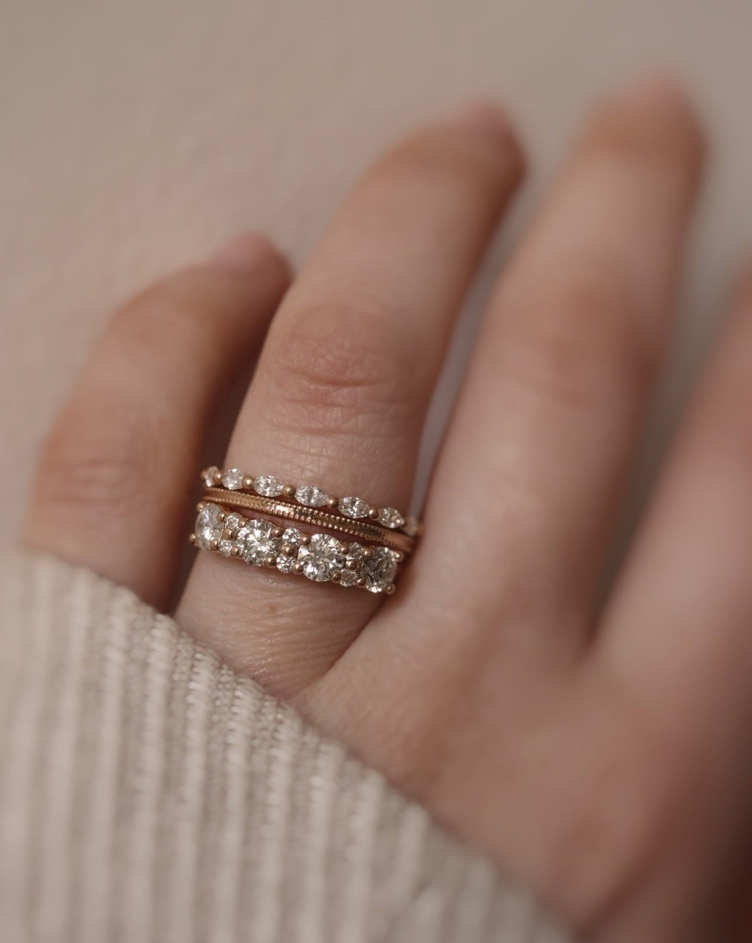 Anita är vacker i sig själv som ett statementsmycke, men också fantastisk att kombinera med ett tunt diamantband som t.ex. Jade Petite Ring eller Marquise Ring.