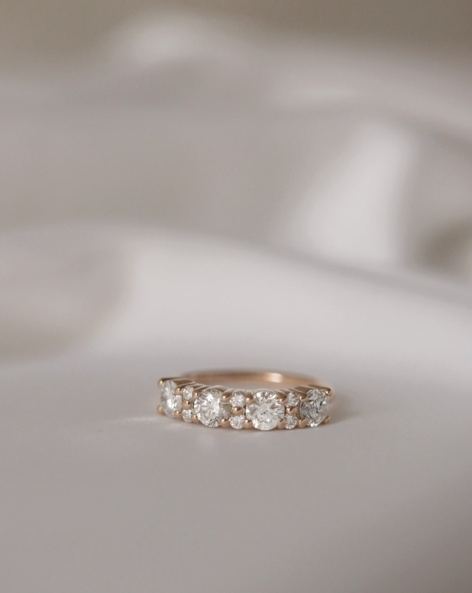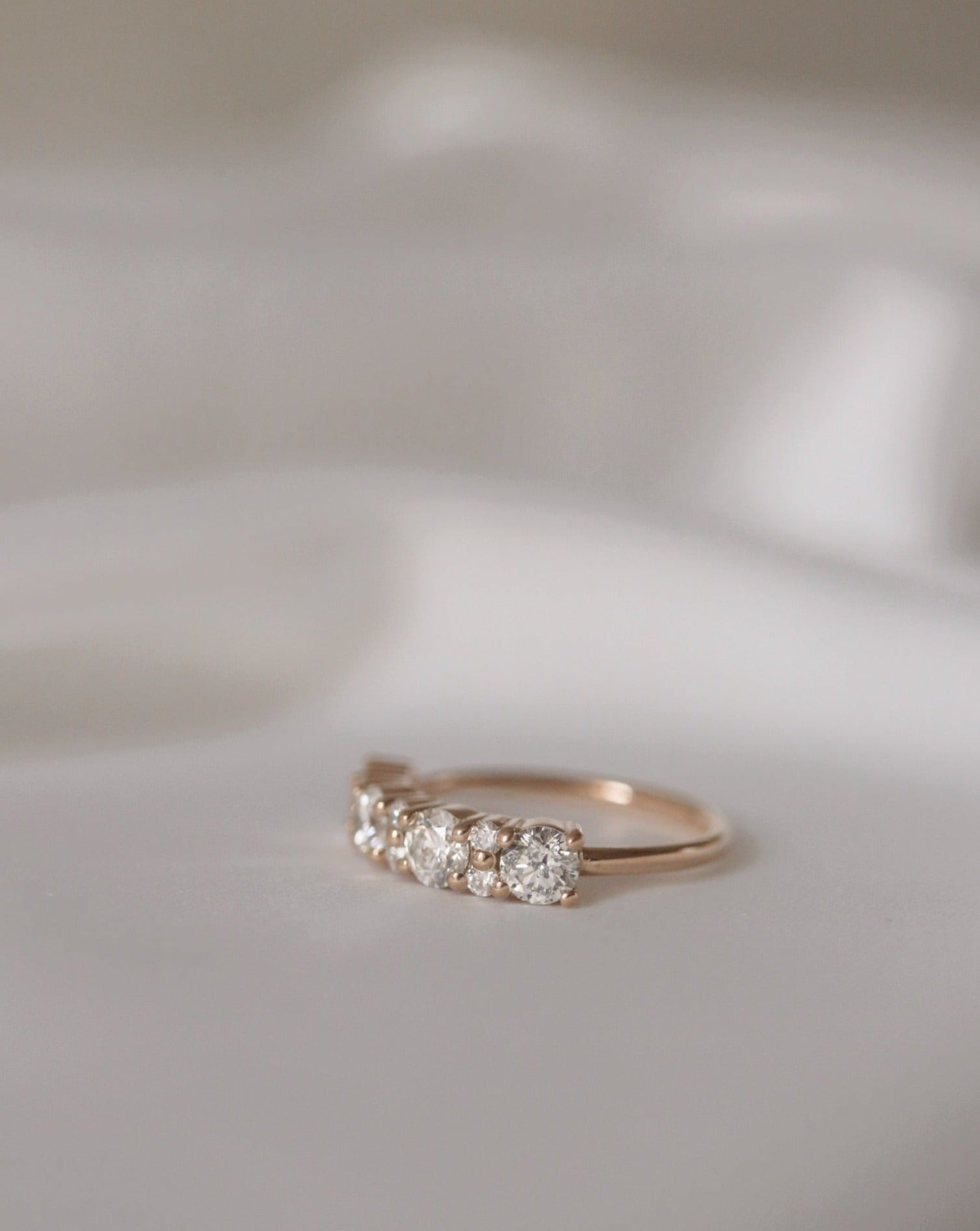 En vacker ring som består av två olika storlekar av briljantslipade diamanter - den mest glittrande slipningen: