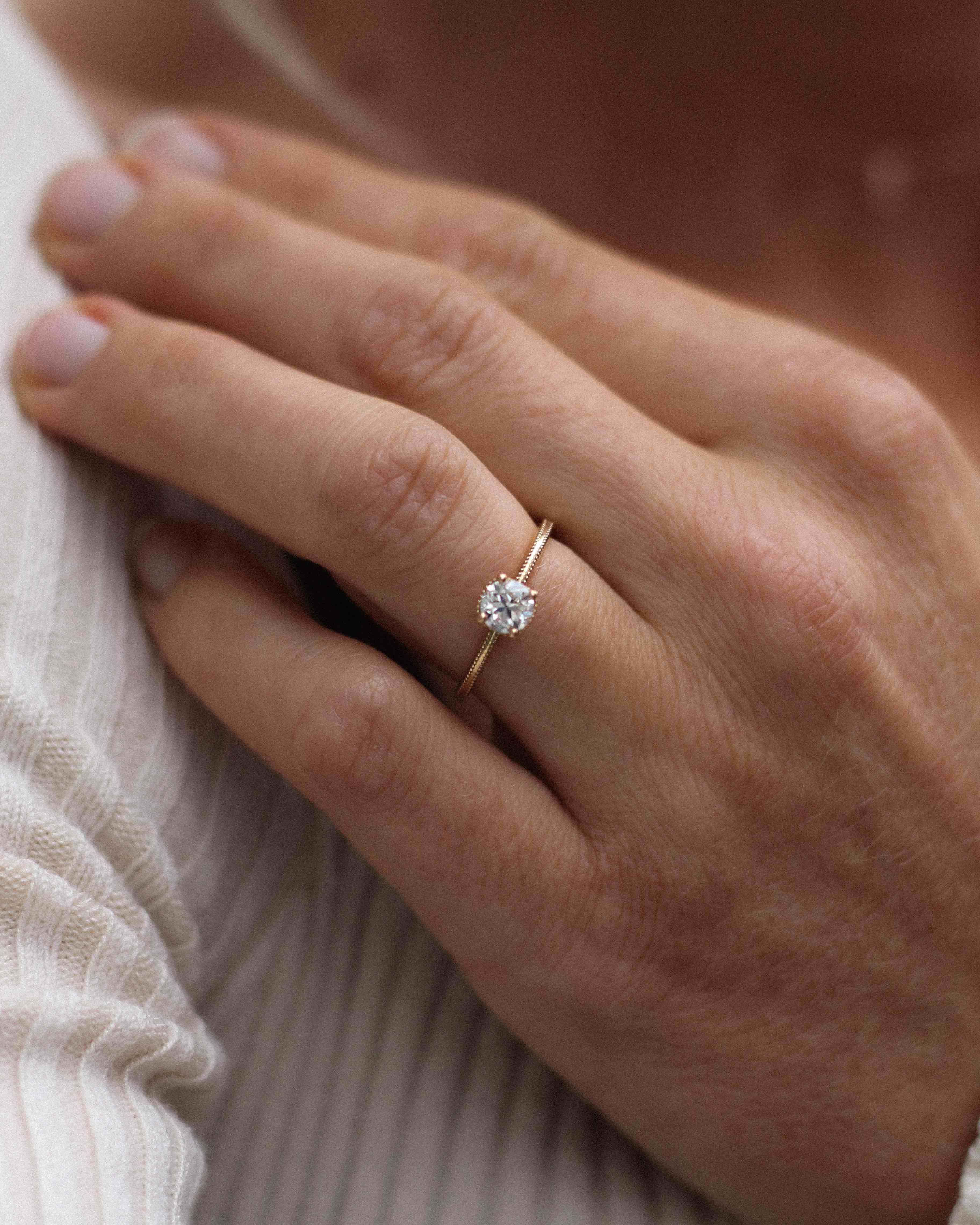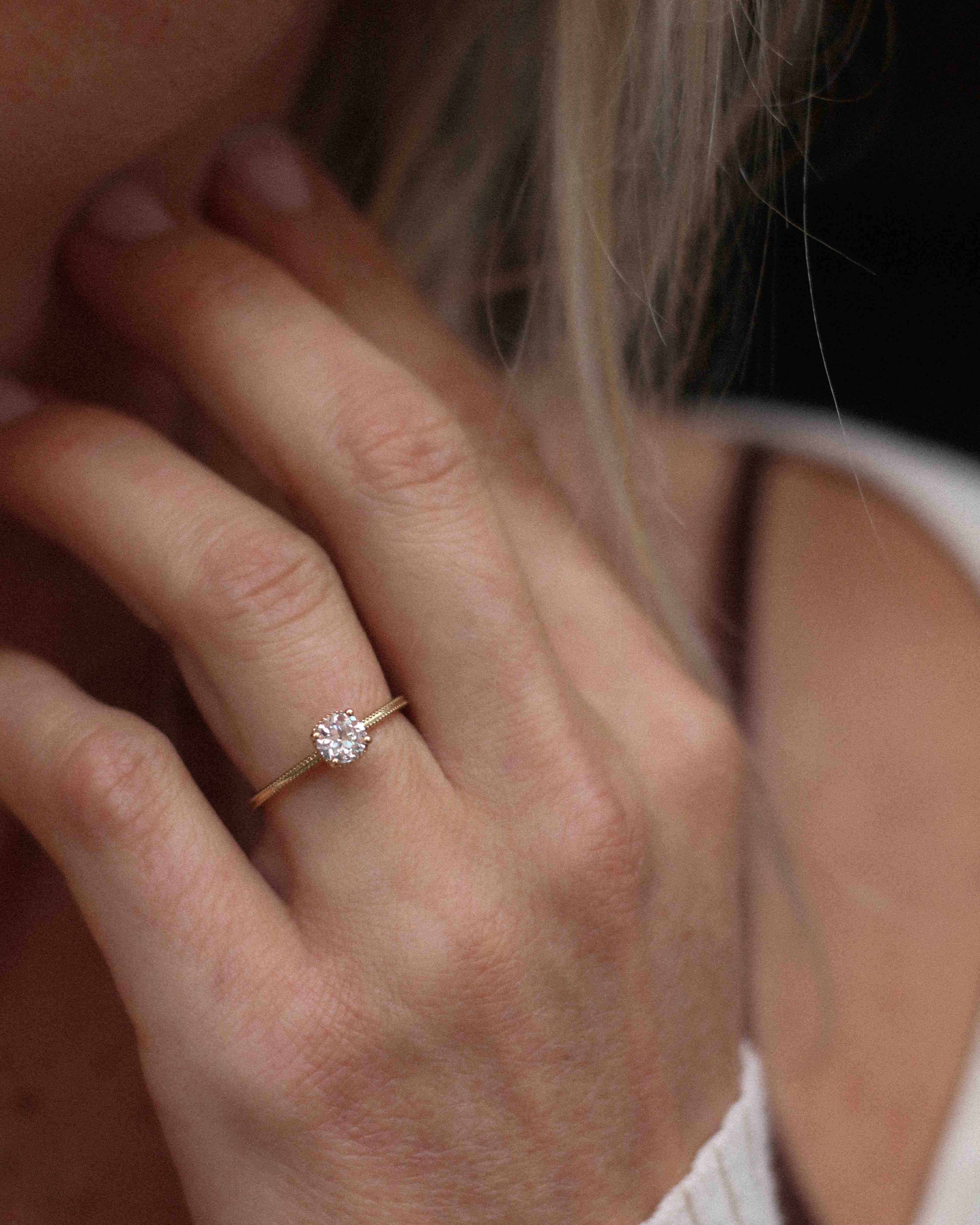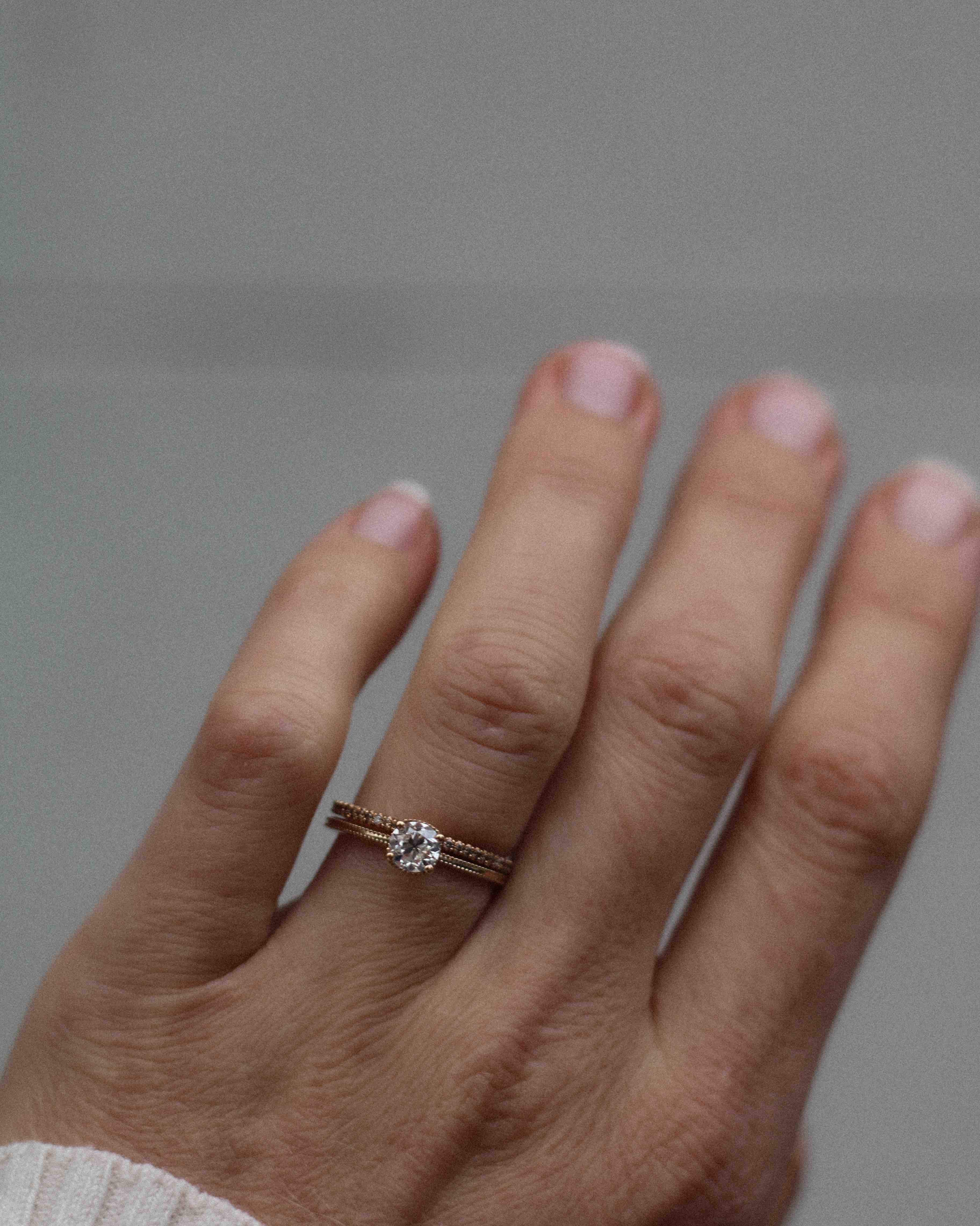 I mitten sitter en 0.57 CT antikslipad diamant.