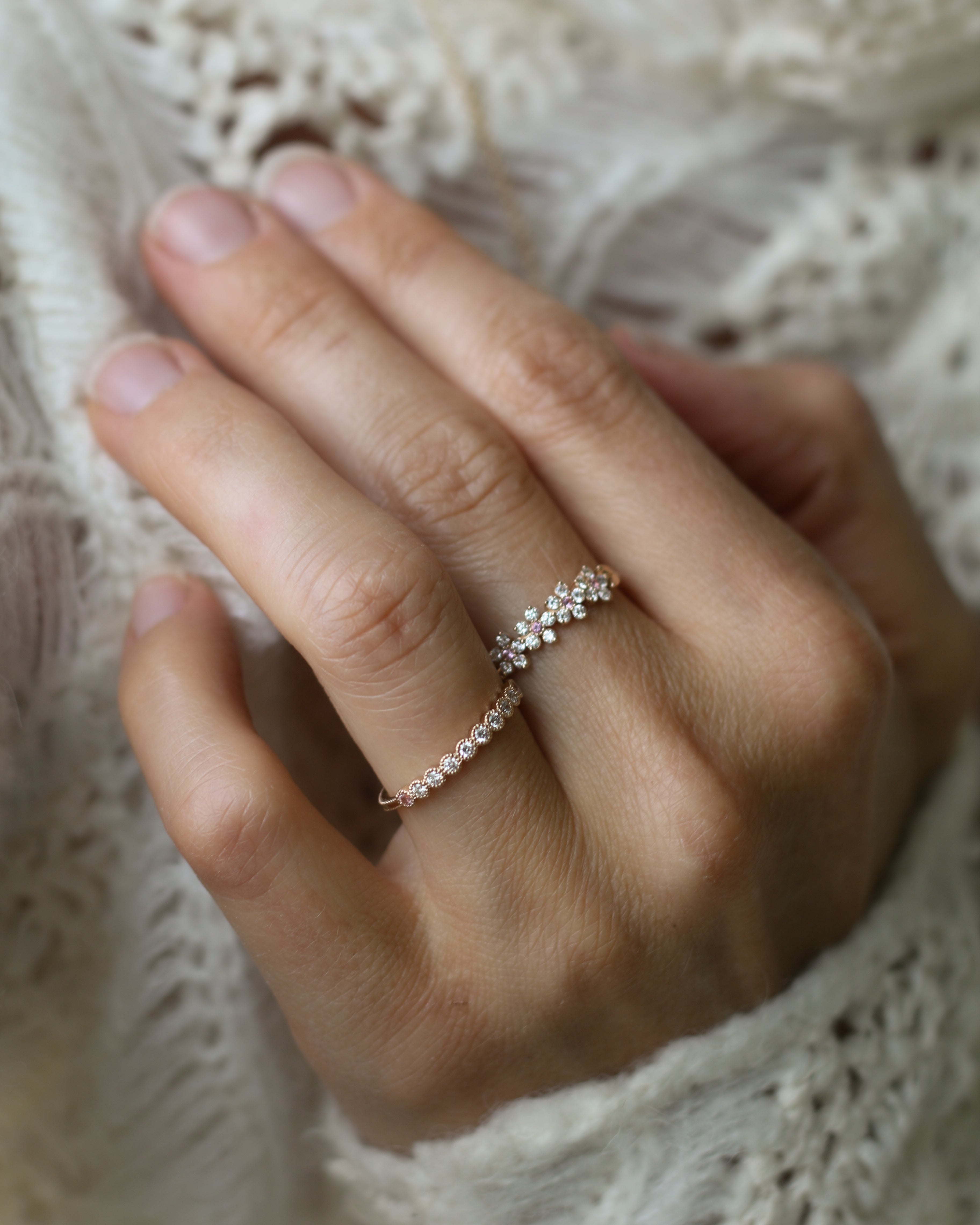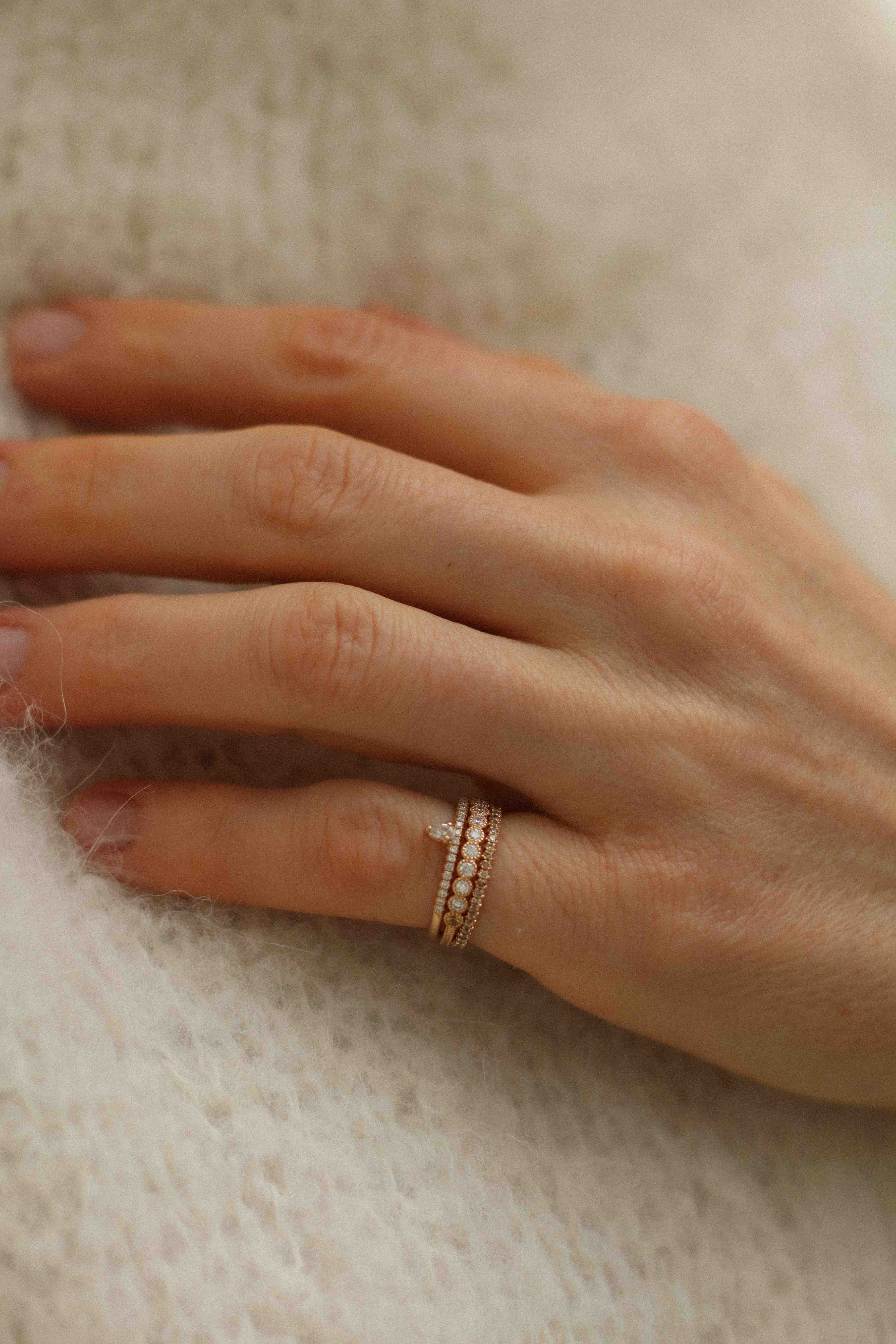 En ring som är vacker att bära själv men som också blir fantastisk ihop med fler ringar i en stack.