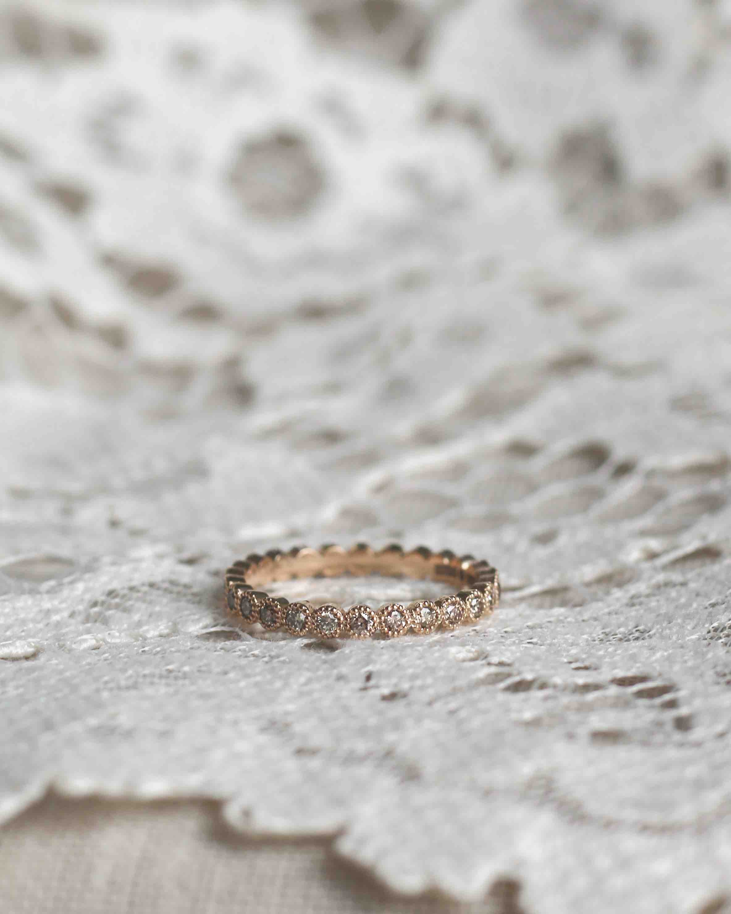 0.02 CT Champagnediamanter hela vägen runt. Total caratvikt varierar med ringstorlek.