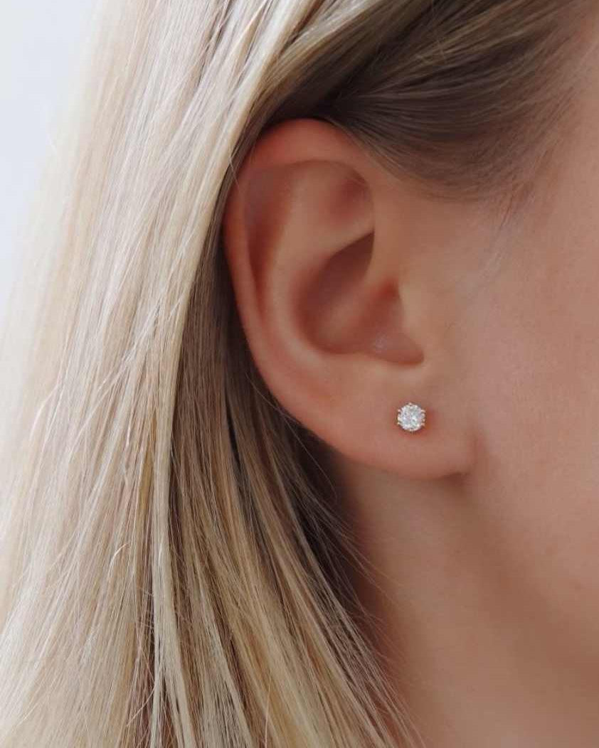 Jag har en förkärlek för minimalistiska diamantörhängen som kan bäras varje dag och inte behöver bytas ut. Därför lägger jag stor vikt vid två aspekter när jag designar: att de ska vara så bekväma att du kan sova i dem, och att du ska kunna bära samma örhängen dag ut och dag in. De ska därför ha säkra lås och vara hållbara!