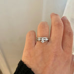 This ring is made to stack! It adds a stylish twist to any ring stack. Preferably worn in between at least two rings.