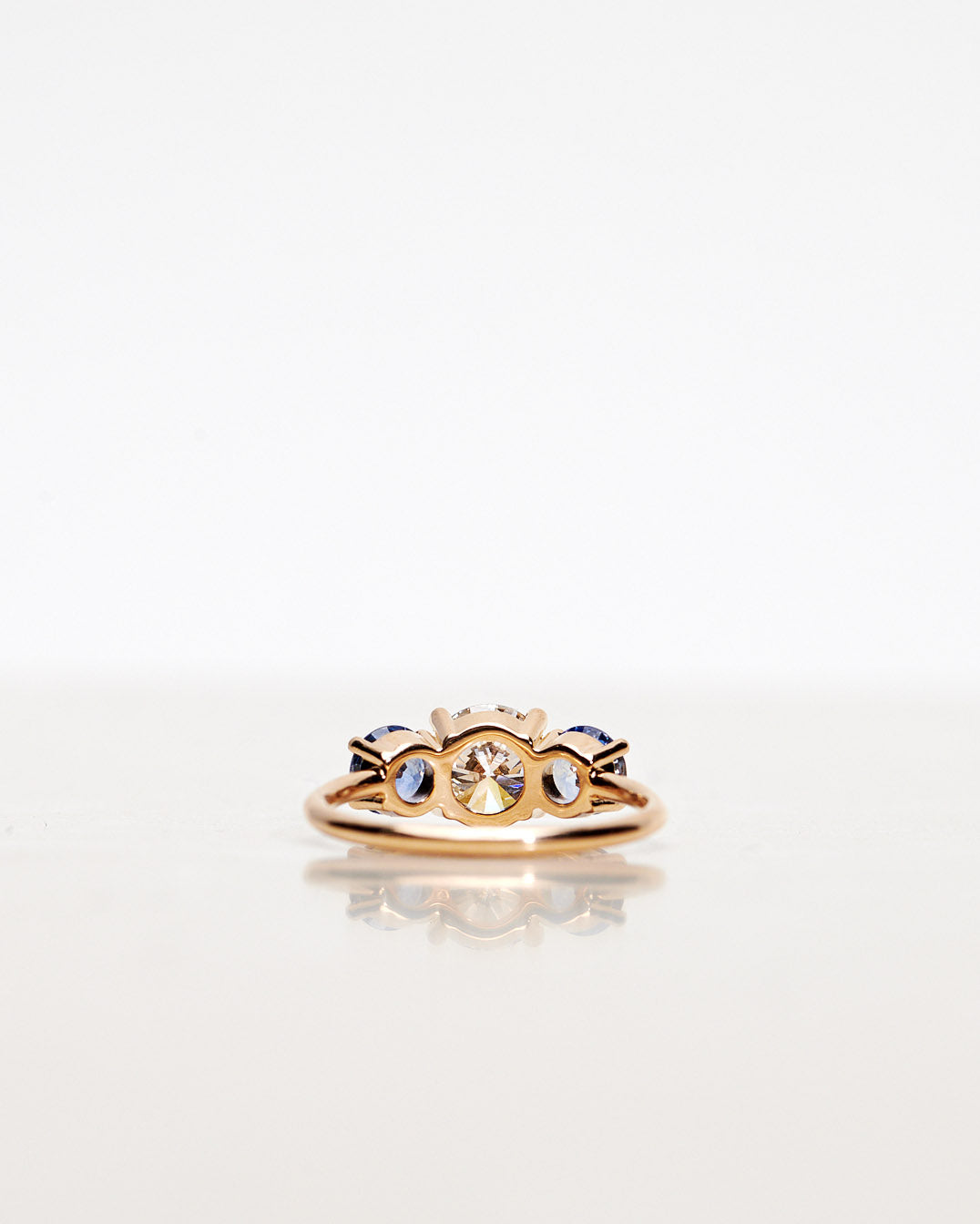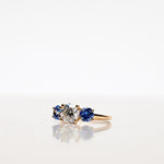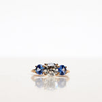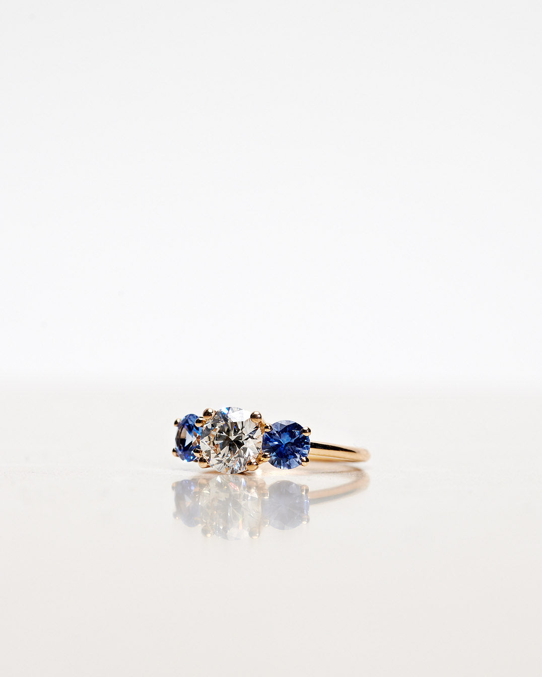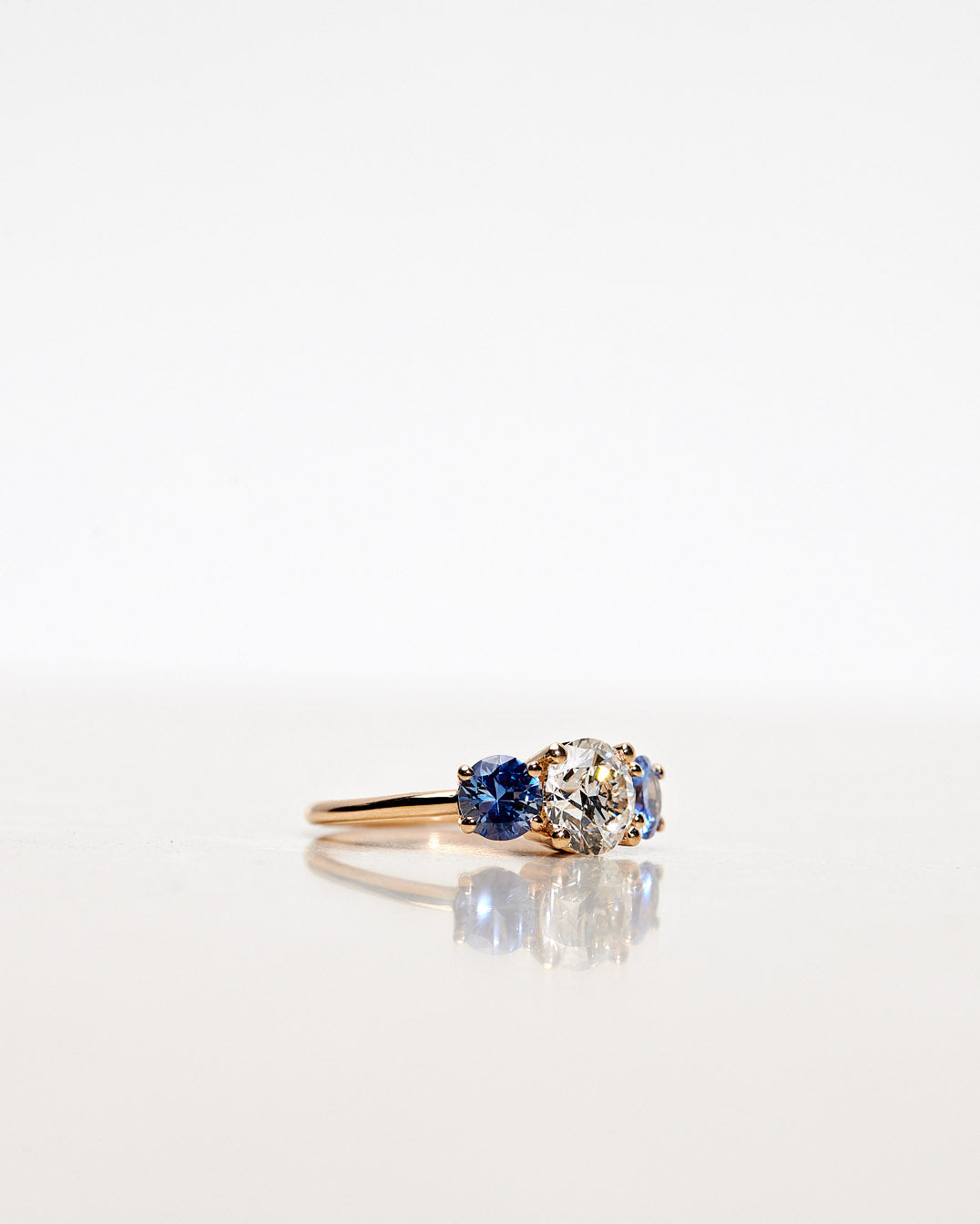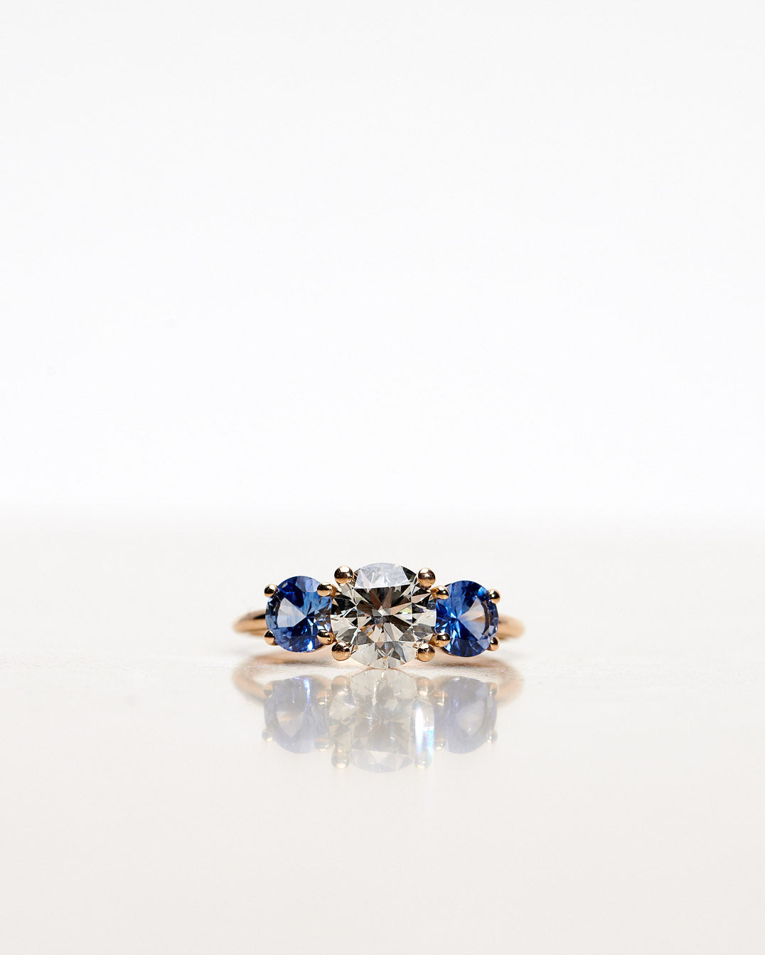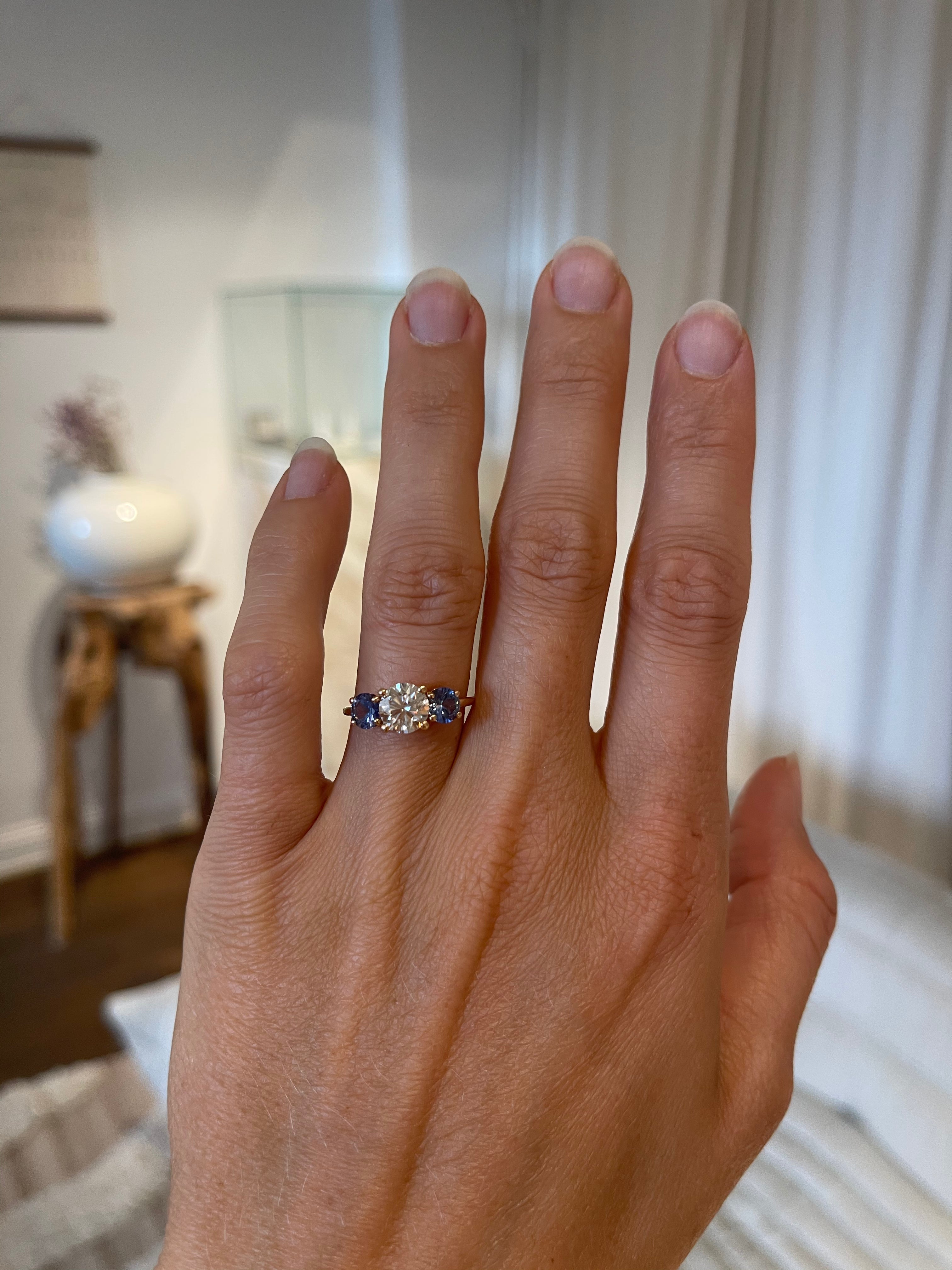 Edith Ring with 1.29 CT Diamond and two 0.55 CT Blue Sapphires (Total 2.40 CT)
