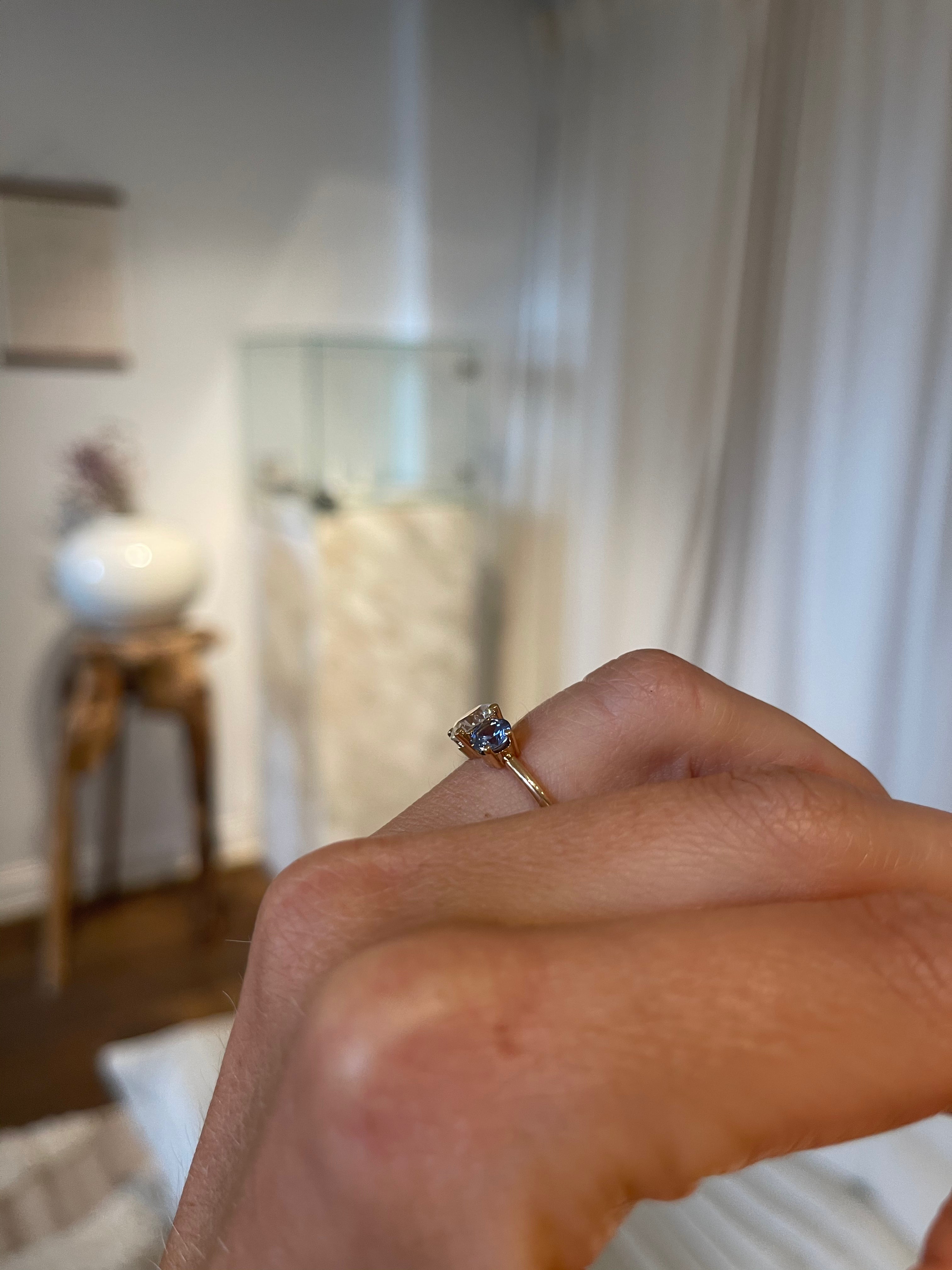 It was created as a custom order where we sourced the perfect gemstones for this dream engagement ring.