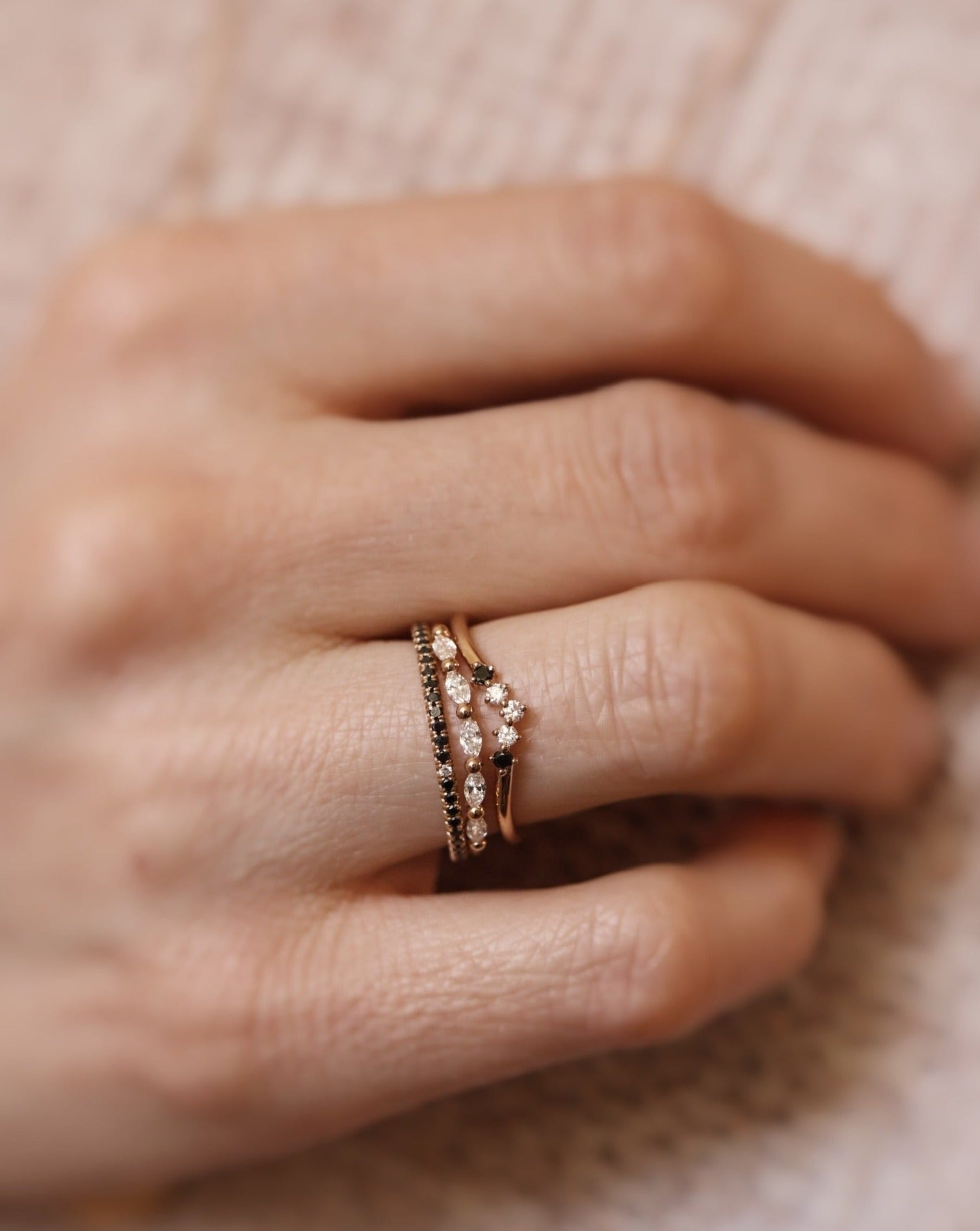 Denna versionen med svarta diamanter ger istället för en romantisk touch istället ett djup och en nonchalant coolhet till din stack.