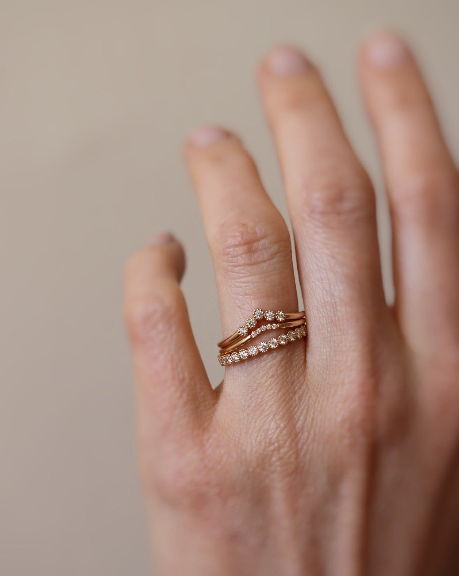 En minimalistisk ring som är perfekt för dig som är ute efter en enkel, opretentiös, böjd stackingring - med bara lite skimmer!