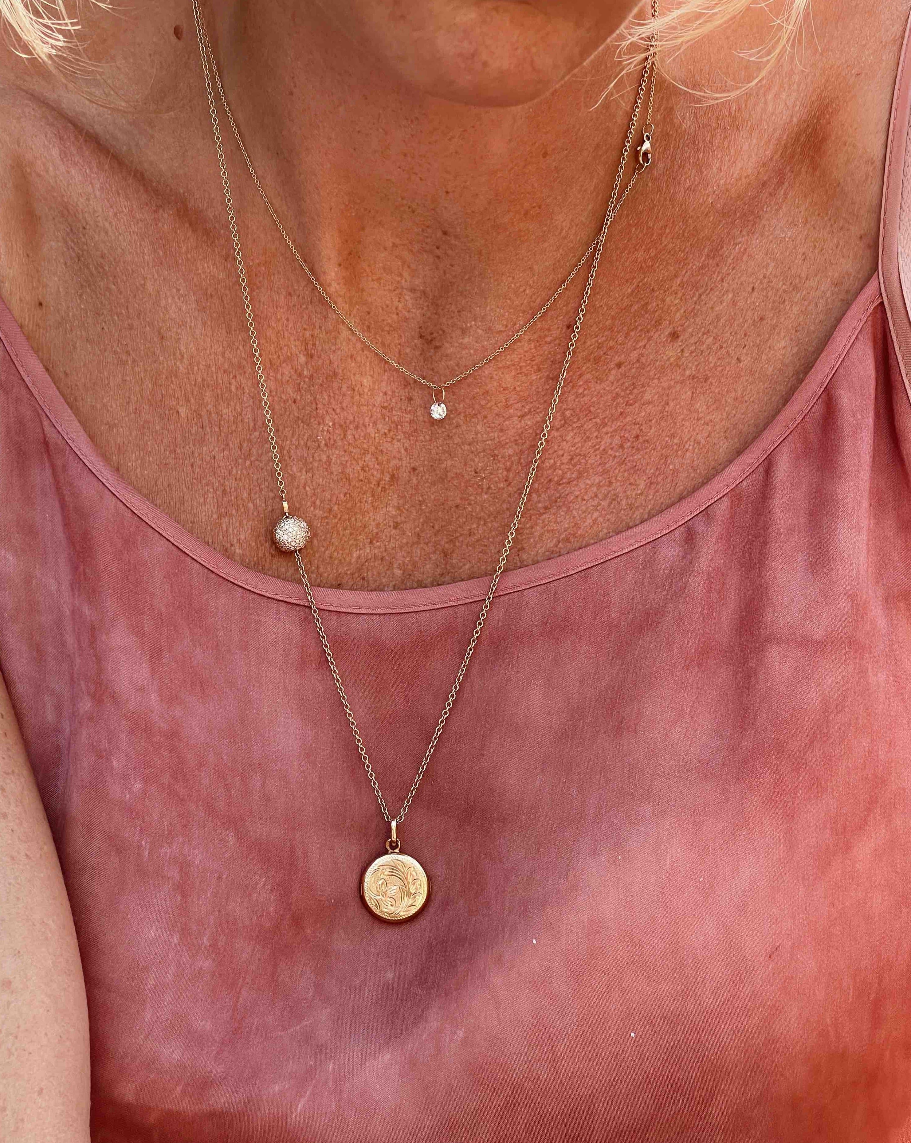 The product includes the diamond globe locket and your choice of gold chain.