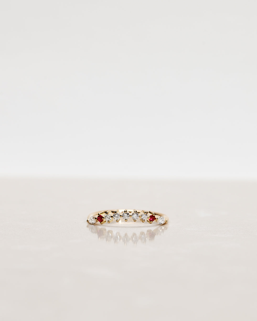 Idun Curved Diamond Band with Red Rubies and Diamonds