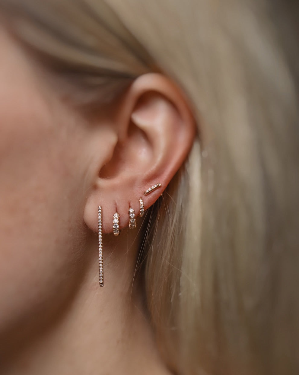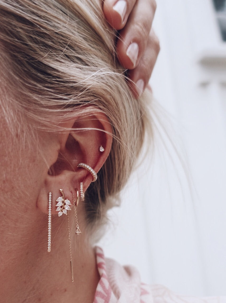 This long statement piece combines beautifully with smaller earrings next to it or in the other ear.