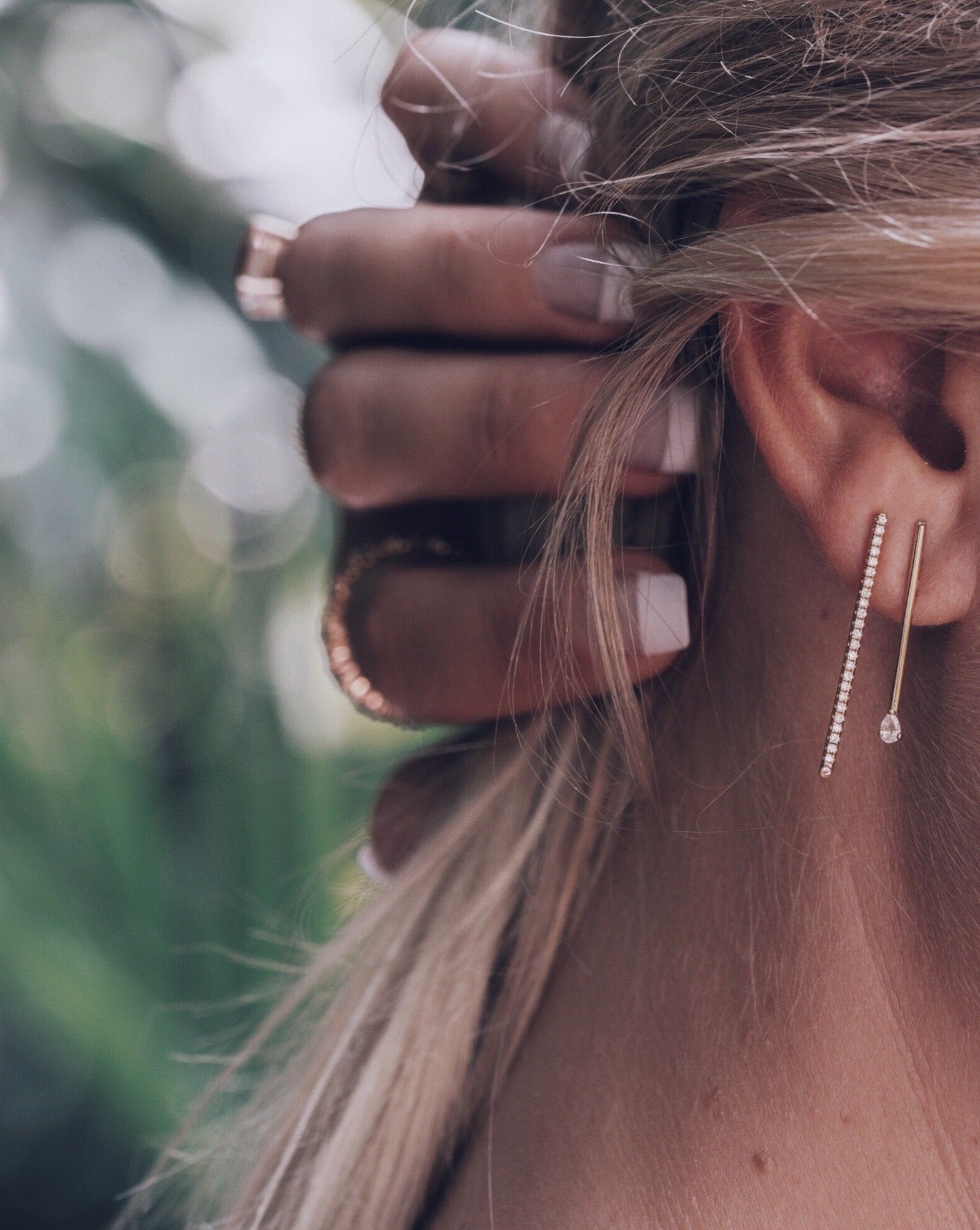 Jade Long Diamond Bar Earring