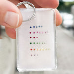 Originalet är gjort med sju små diamanter - här valde vår kund att byta ut två diamanter mot gröna smaragder för att symbolisera sina nyfödda tvillingpojkar!