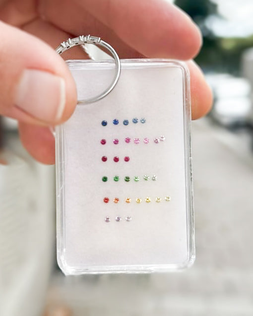 Välj en av de naturliga färgstenarna på sista bilden. Samtliga är safirer utom de röda som är rubiner och de gröna som är turmaliner! Du kan även välja: svart diamant, champagnediamant, chokladdiamant eller olivgrön safir.