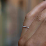 Ädelstenarna är fattade i en infattning där så lite guld som möjligt syns ovanifrån - nästan som att de svävar som ett glitterband över fingret. Det ger ringen en extra nätt och minimalistisk känsla!