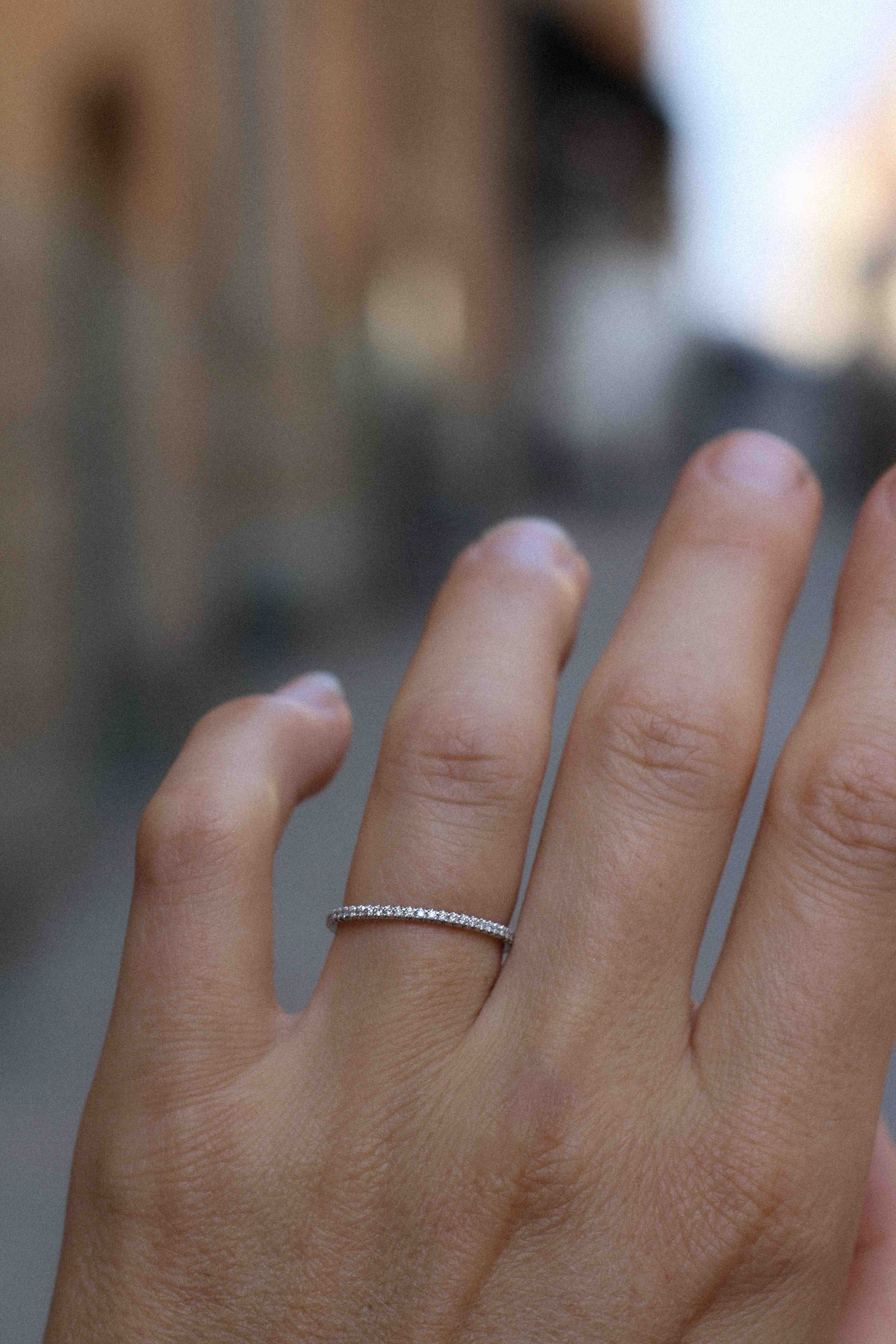 Jag älskar Jade Petite Ring och tycker det är den perfekta, nätta evighetsringen. Den är en så fin brygga mellan alla andra ringar du bär: Jade Petite tar aldrig över och är heller aldrig anonym. Ett glittrigt band som glimmar till! Jag tycker du ska investera i en med helt vita diamanter - och sedan minst en till i dina drömfärger. Jag bär minst en Jade Petite Ring i någon färg varje dag, oavsett vilka andra smycken jag bär för dagen! Xx Cecilia