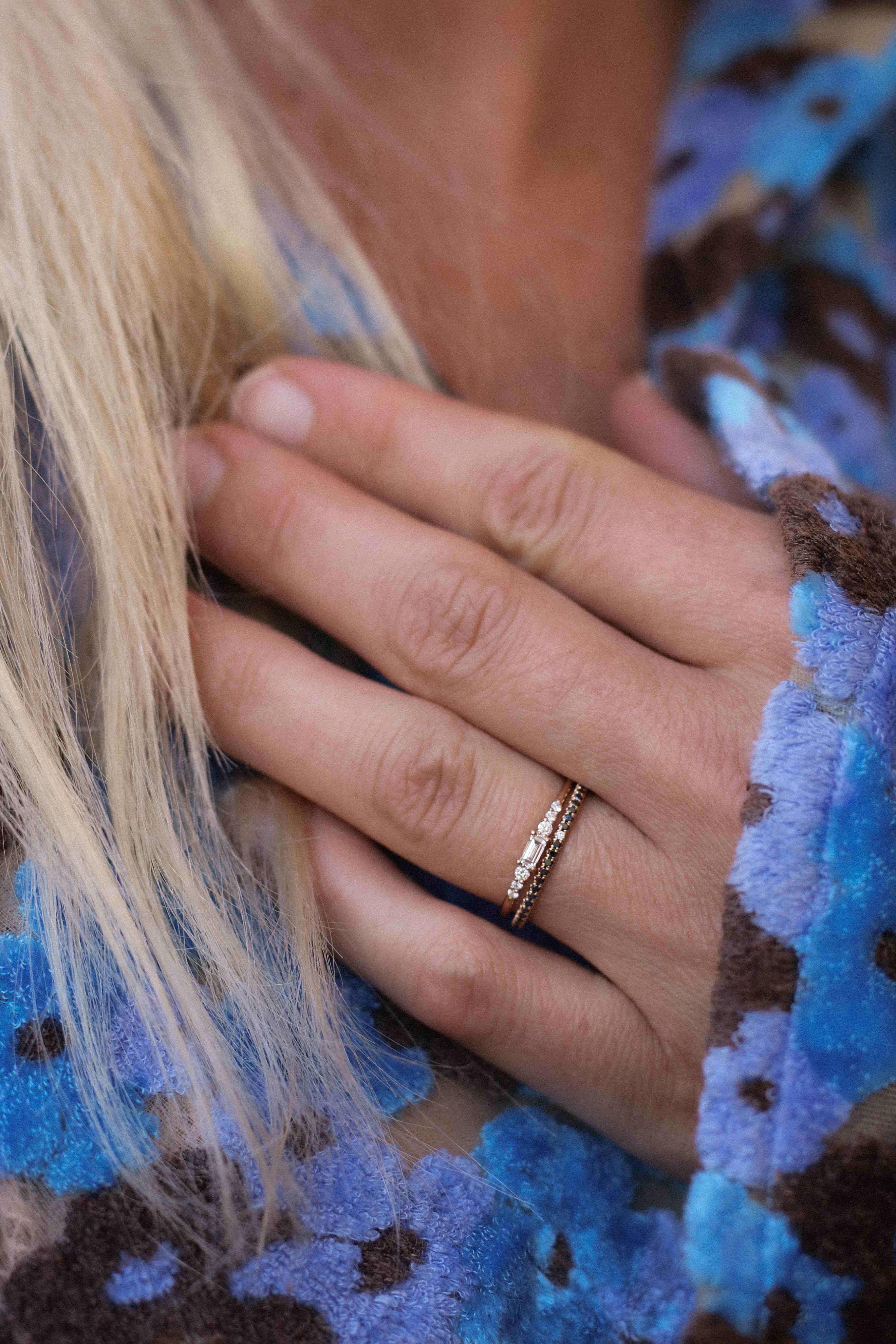 Jag älskar Jade Petite Ring och tycker det är den perfekta, nätta evighetsringen. Den är en så fin brygga mellan alla andra ringar du bär: Jade Petite tar aldrig över och är heller aldrig anonym. Ett glittrigt band som glimmar till! Jag tycker du ska investera i en med helt vita diamanter - och sedan minst en till i dina drömfärger. Jag bär minst en Jade Petite Ring i någon färg varje dag, oavsett vilka andra smycken jag bär för dagen! Xx Cecilia