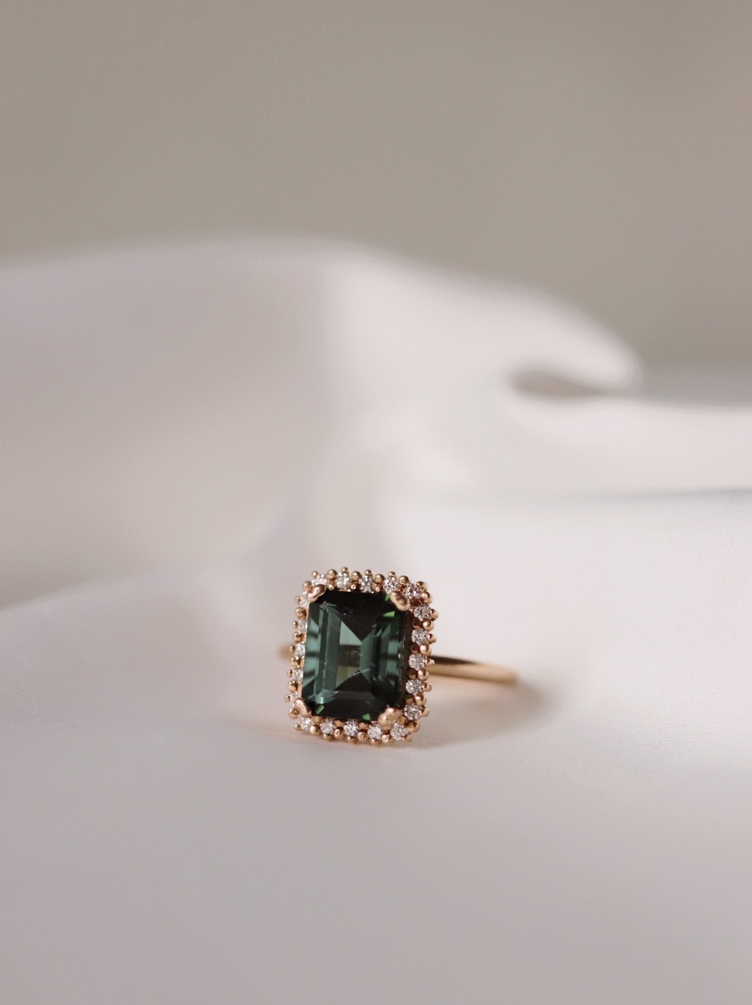 Jagger Ring med Mörkgrön Turmalin och Diamanthalo