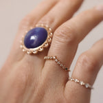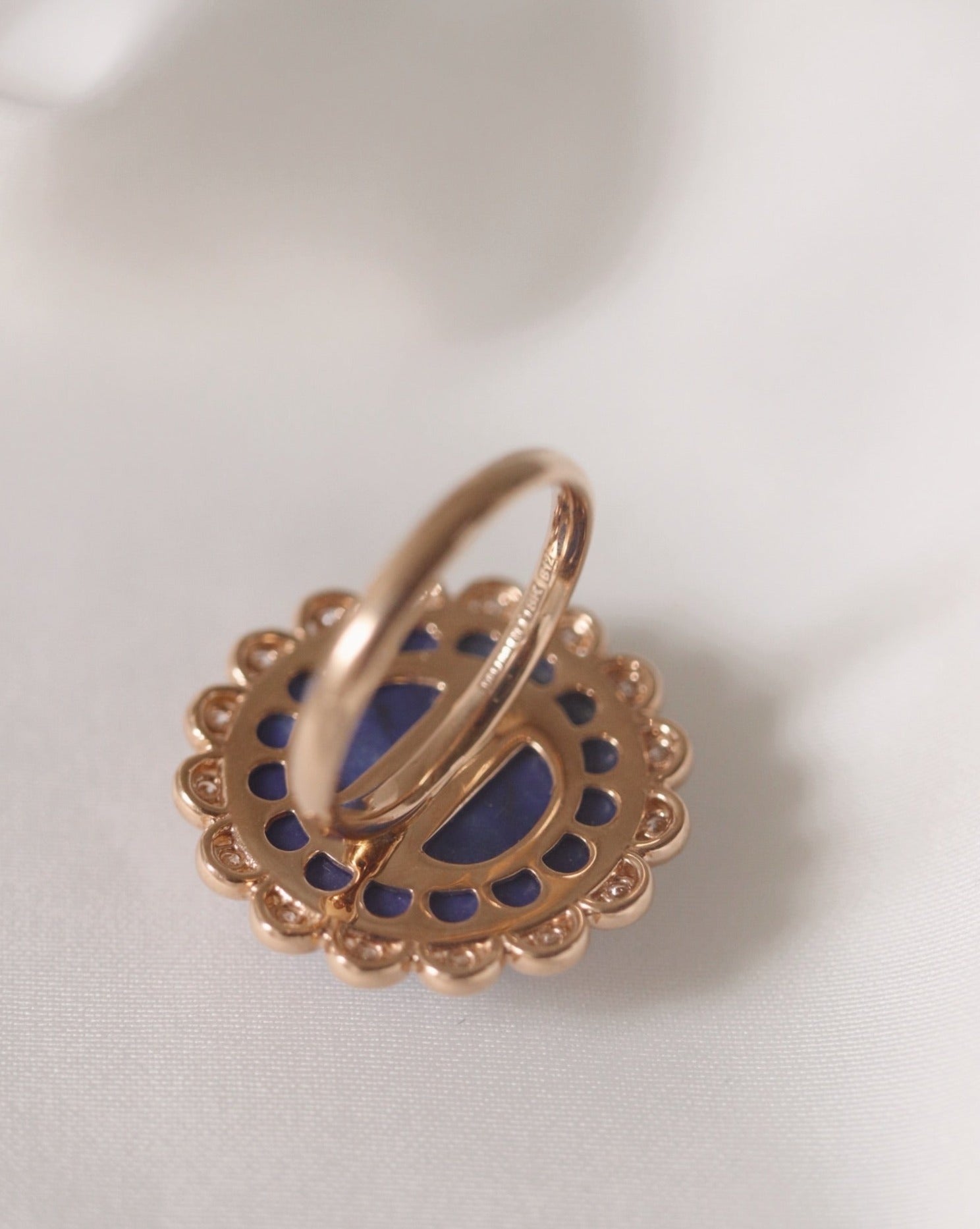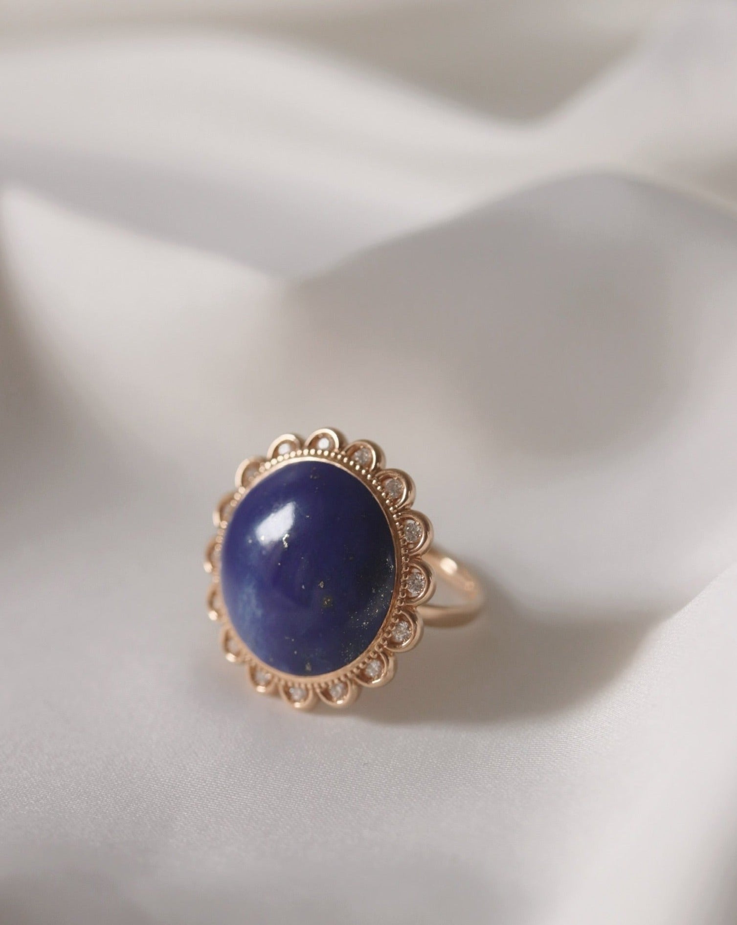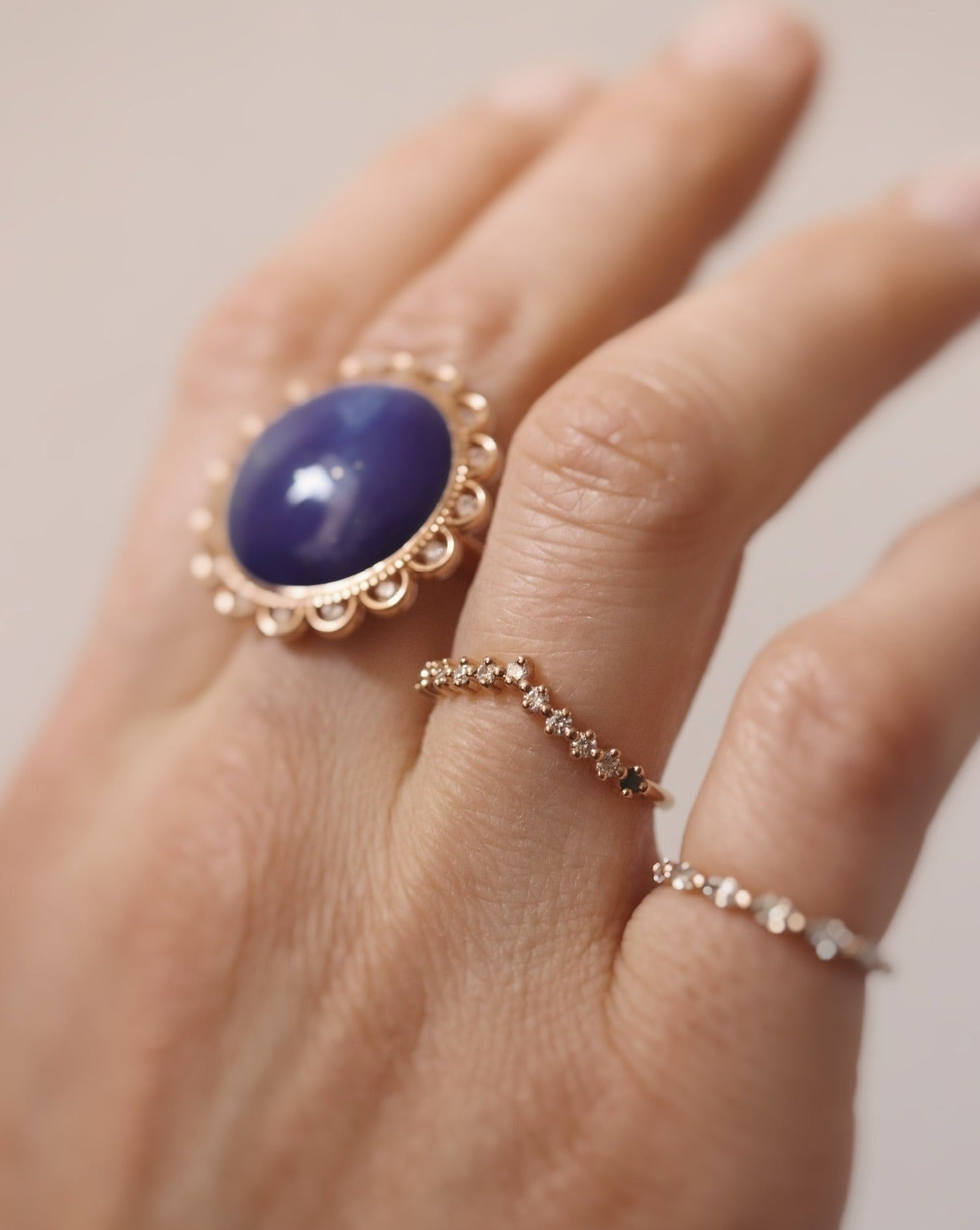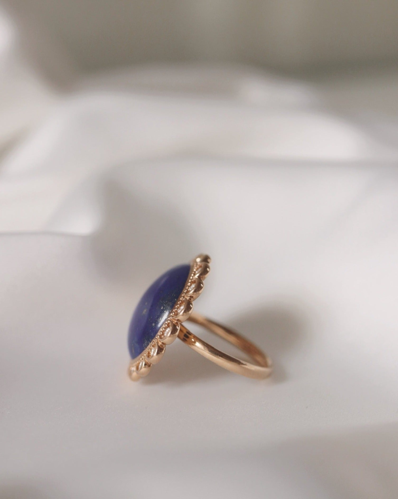 Since each stone is unique, after ordering, you will receive an email with the unique Lapis Lazuli that Cecilia has chosen for you from the very same box of gemstones in which she found the stone on these pictures. You will get to confirm that you love the stone before we put your ring in production.