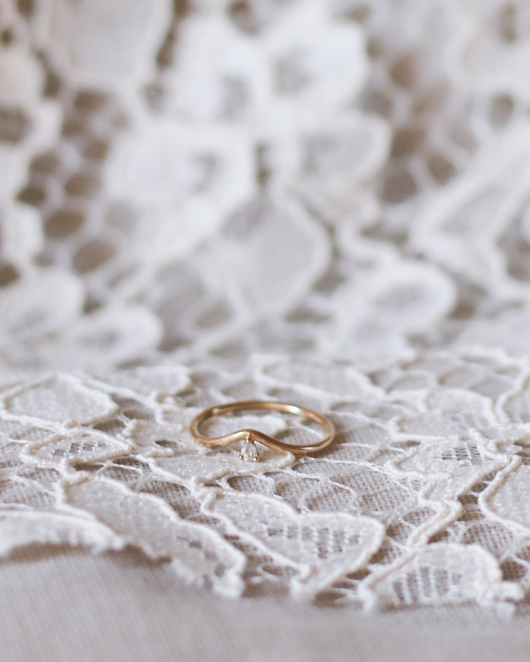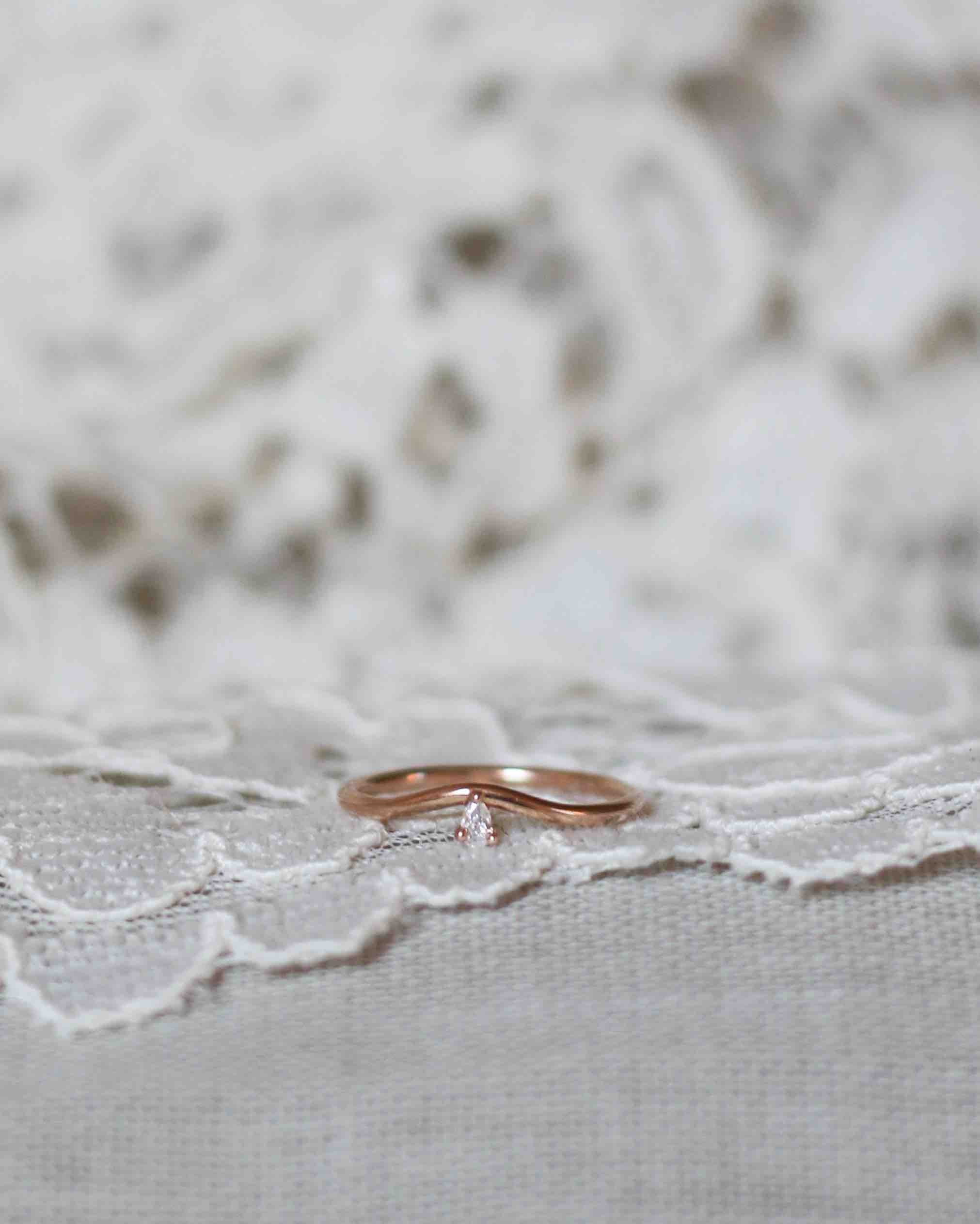 En underbar ring med en diamant som är slipad till den lite ovanligare formen droppe.