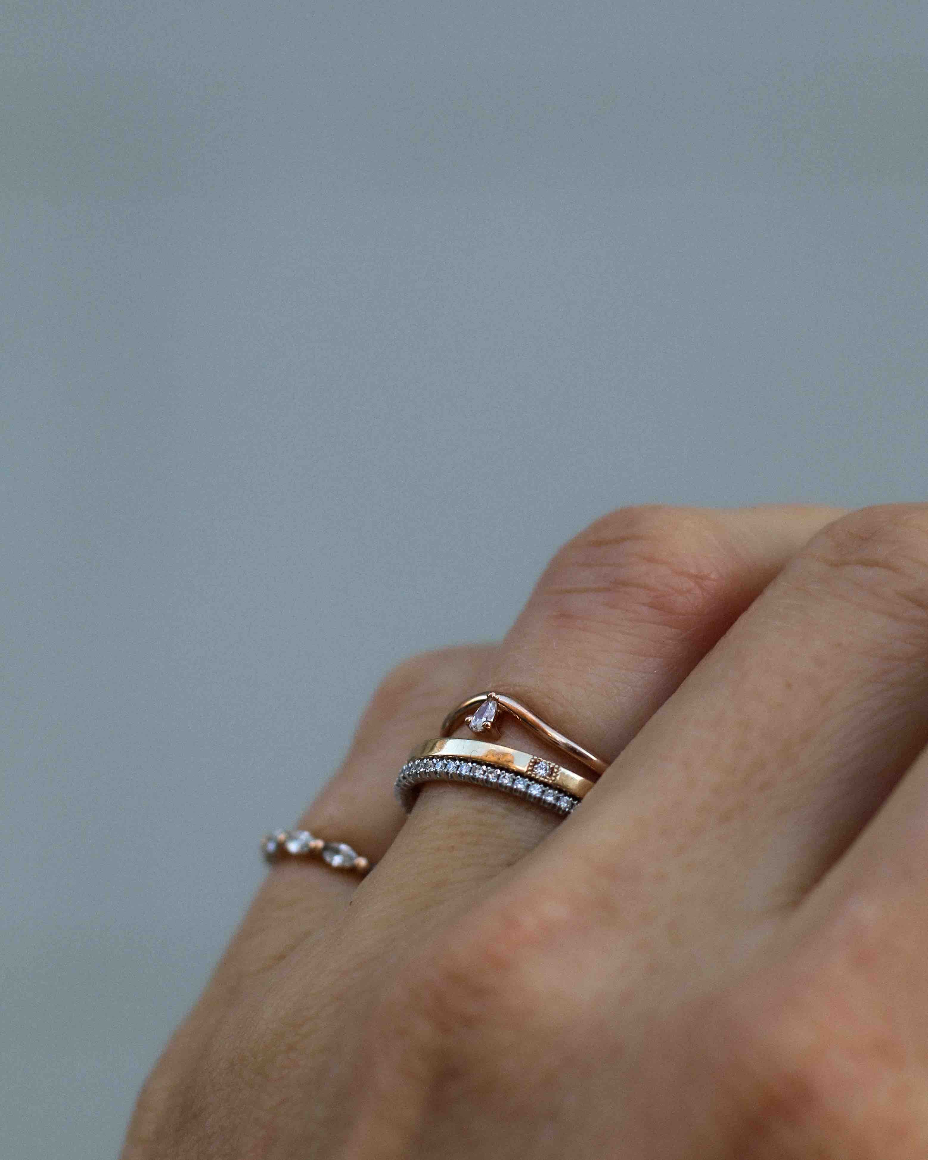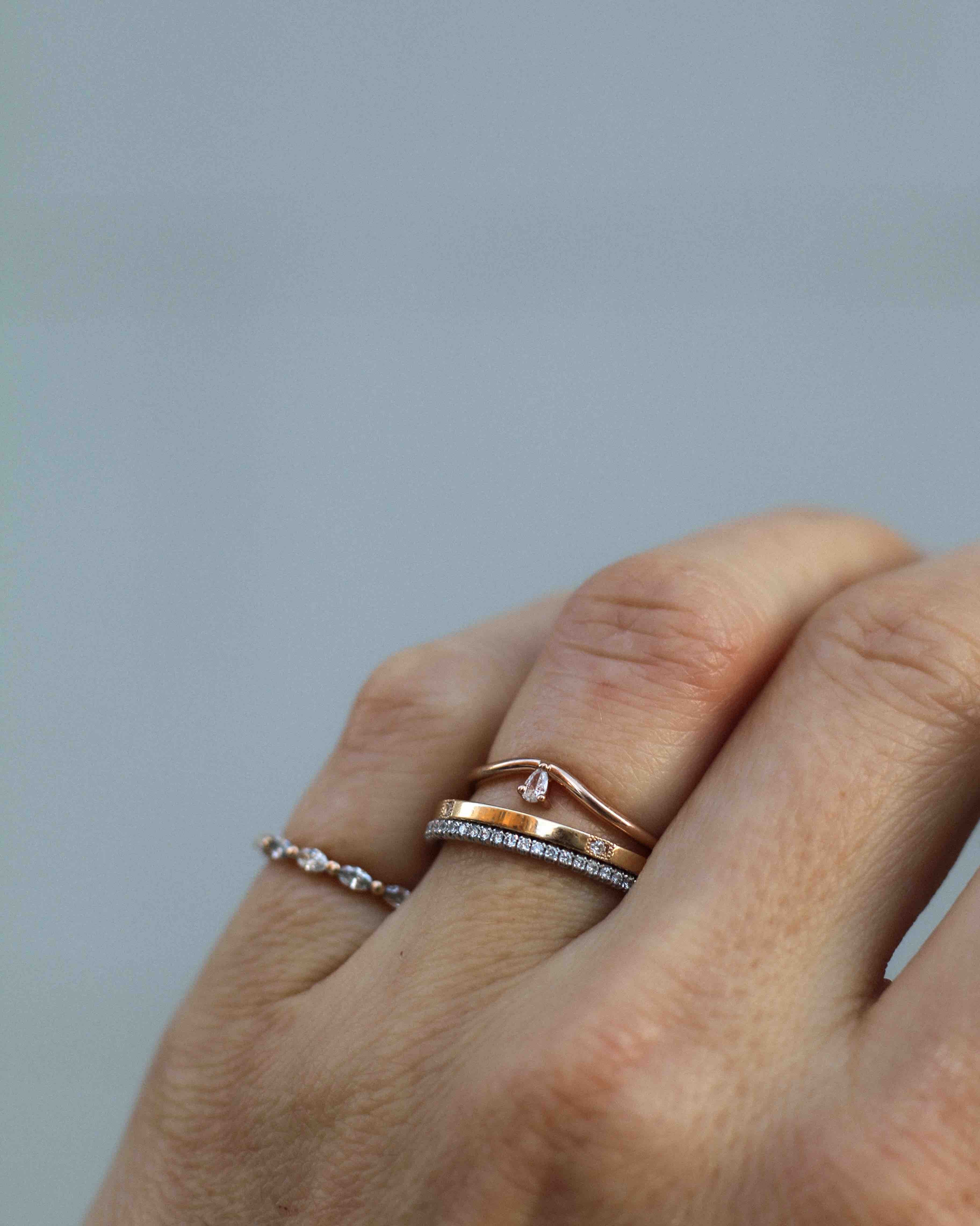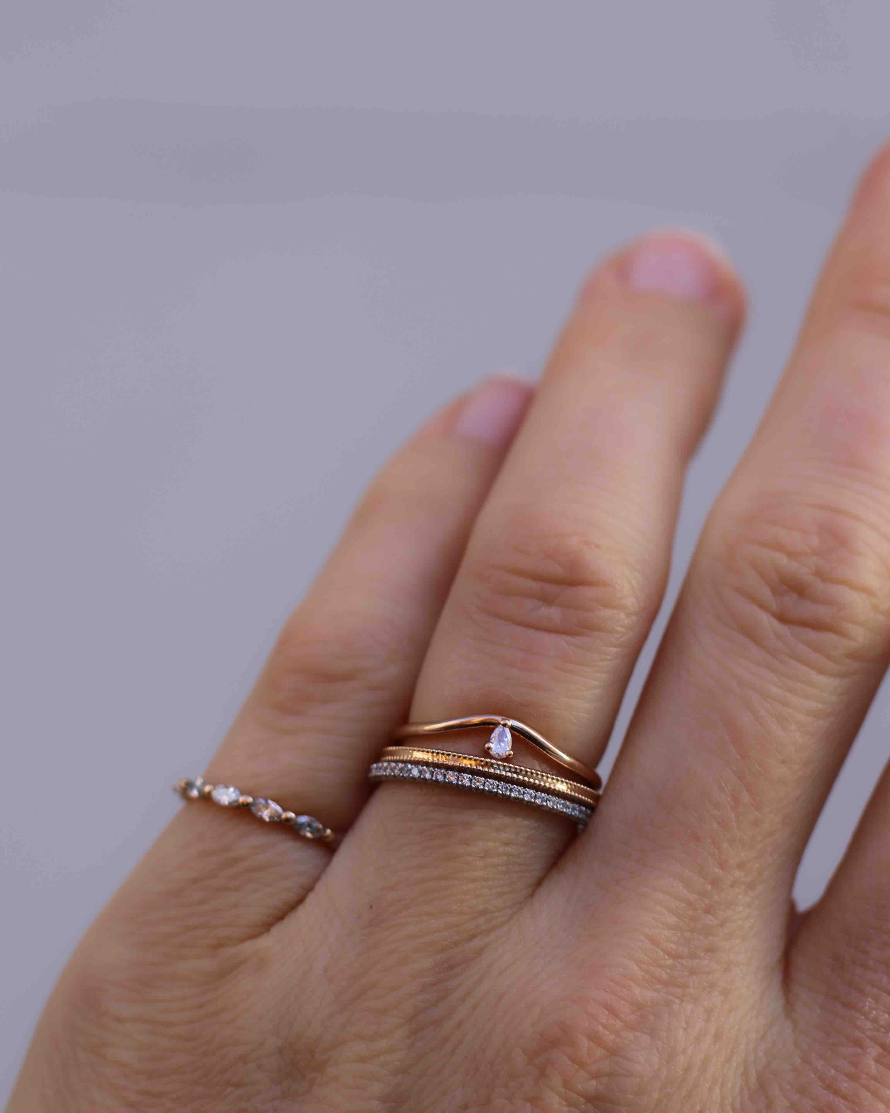 Ringbandet är böjt och anpassat för att bli ett vackert avslut på din ringstack.