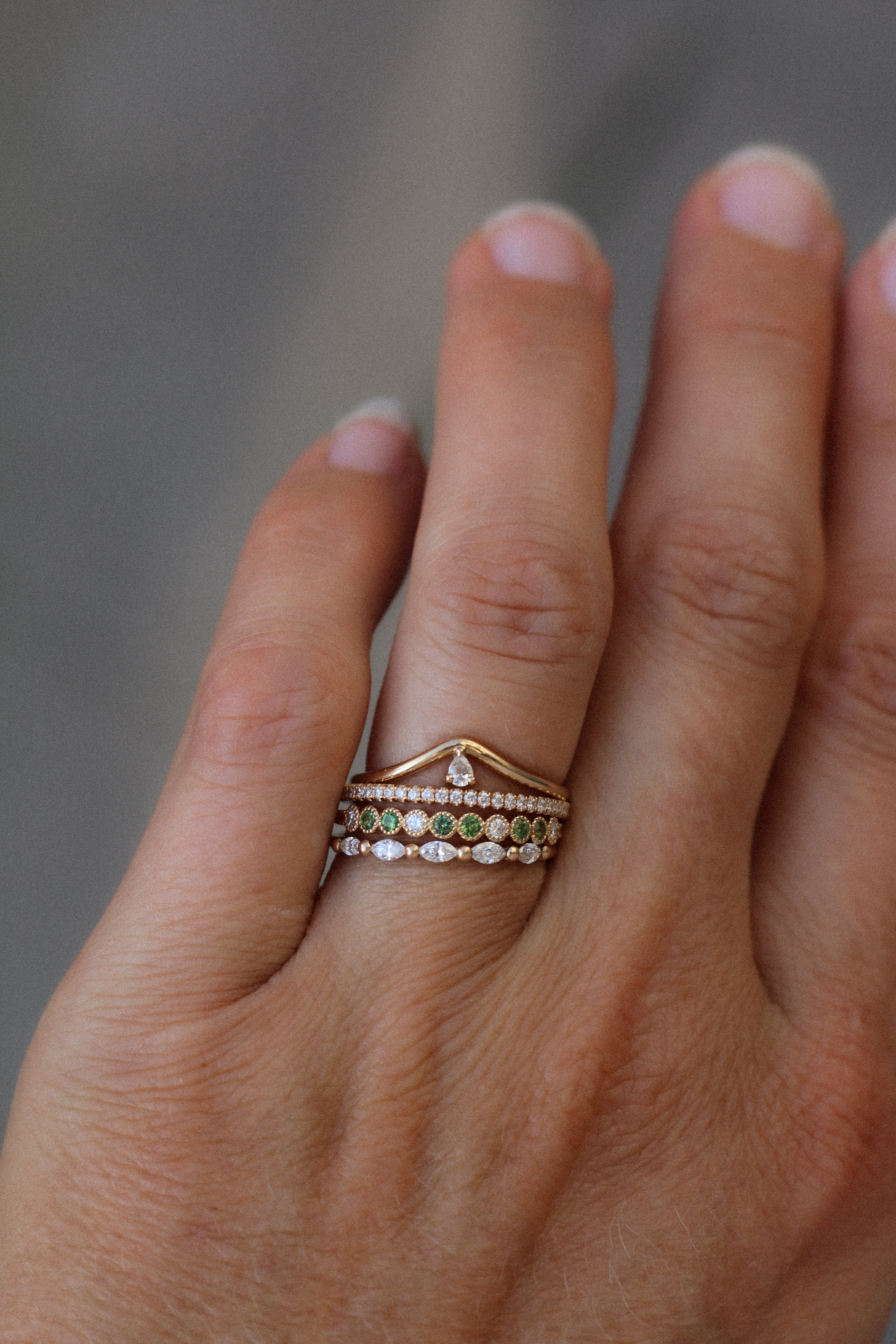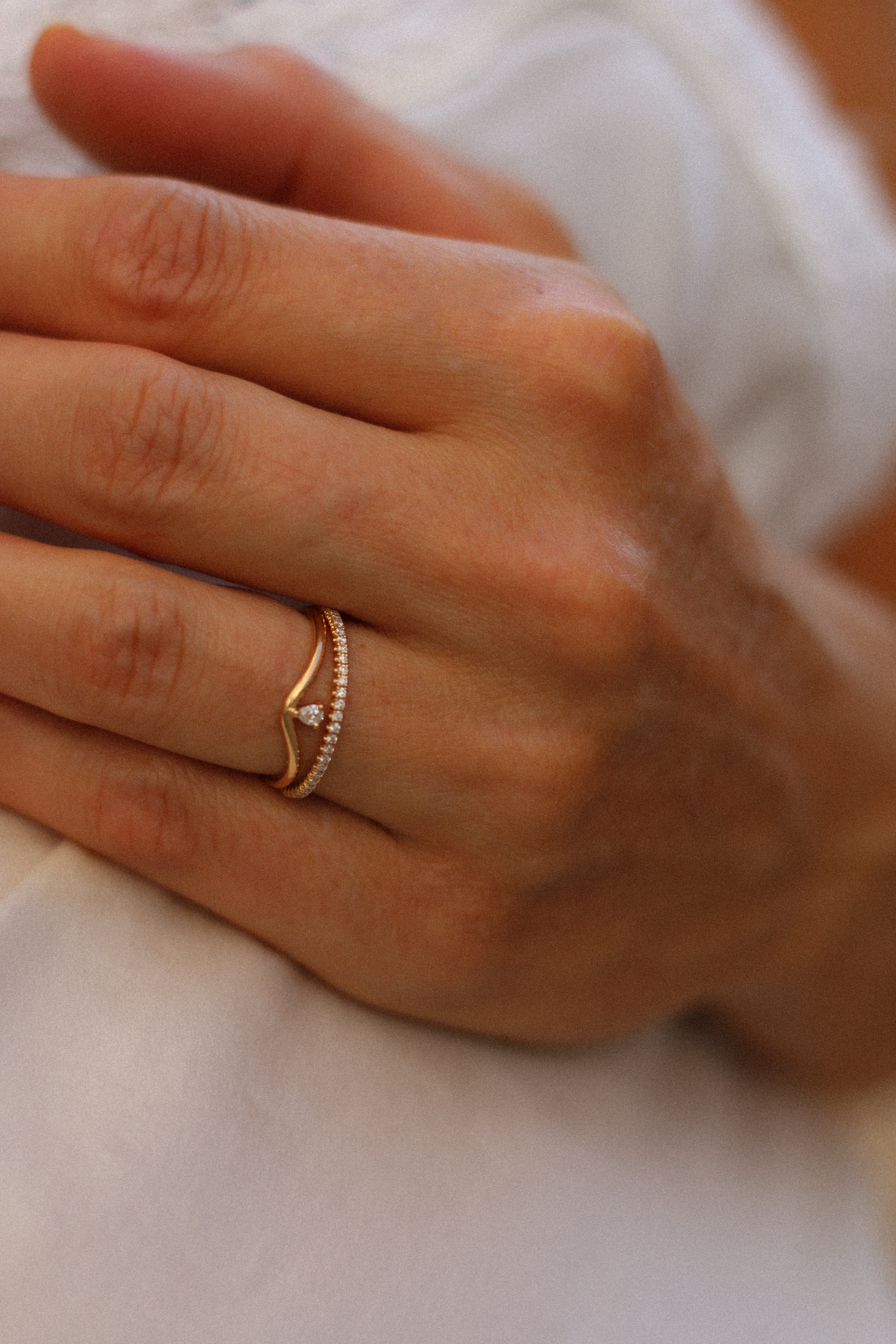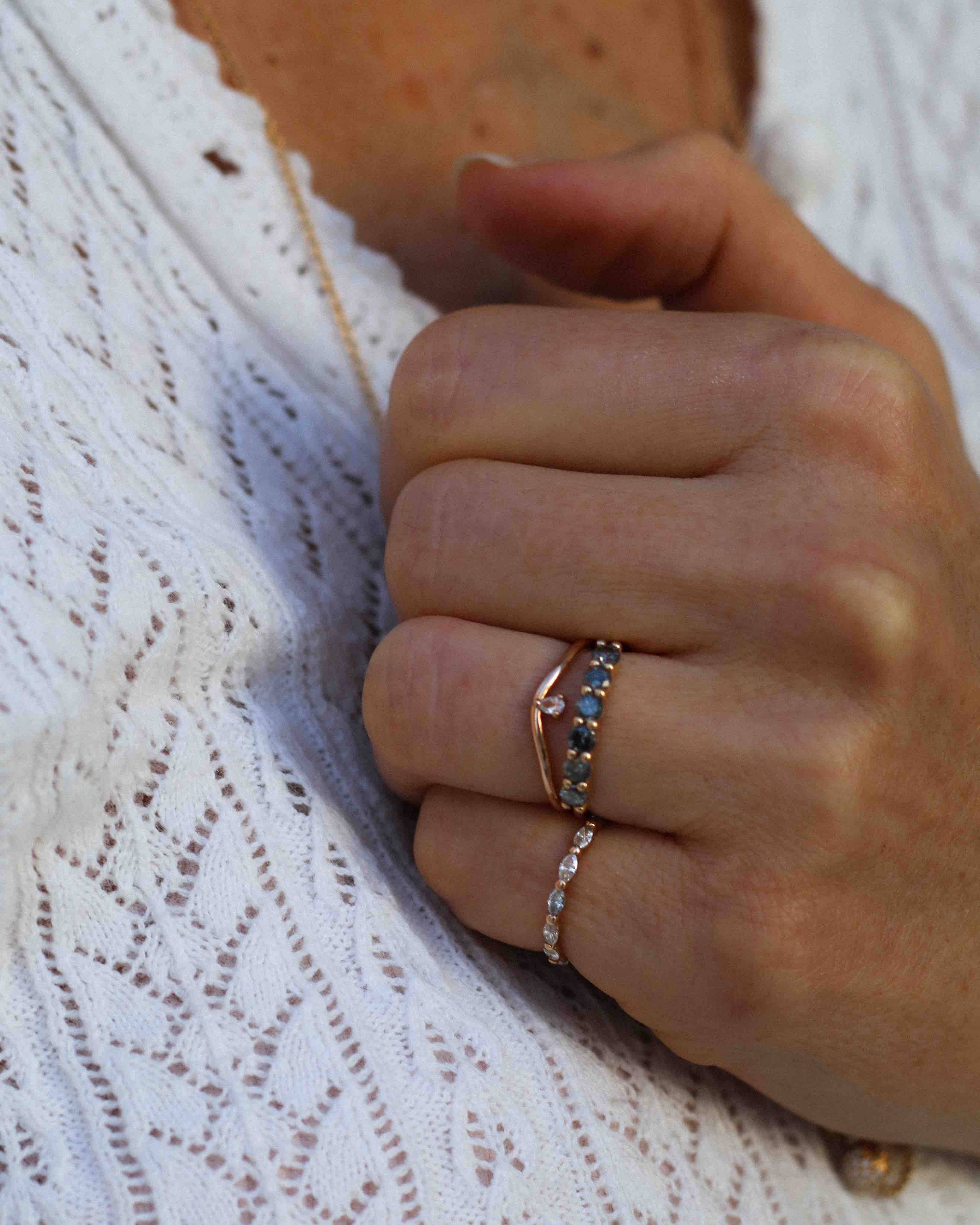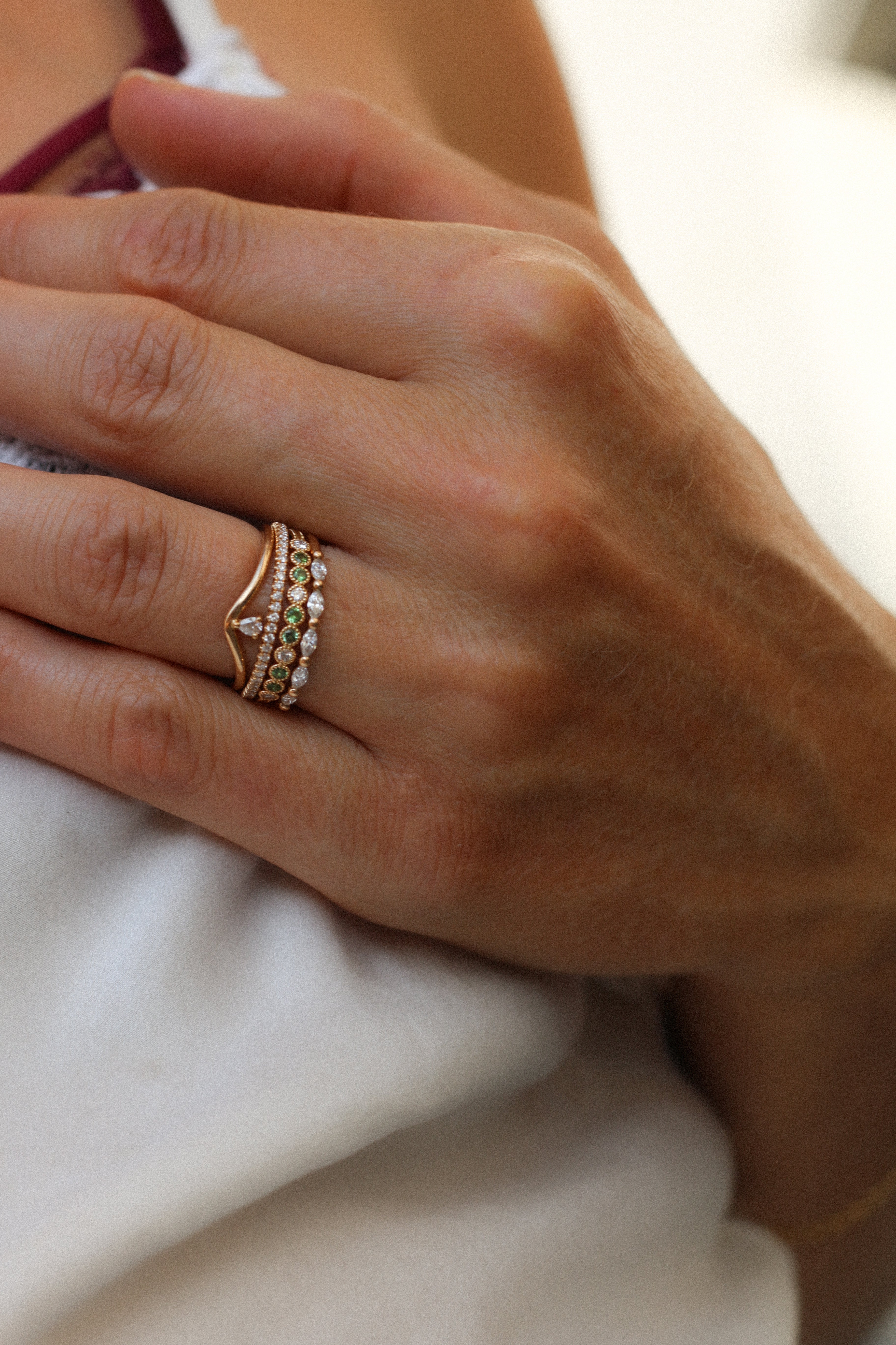 Ringbandet är böjt och anpassat för att bli ett vackert avslut på din ringstack.