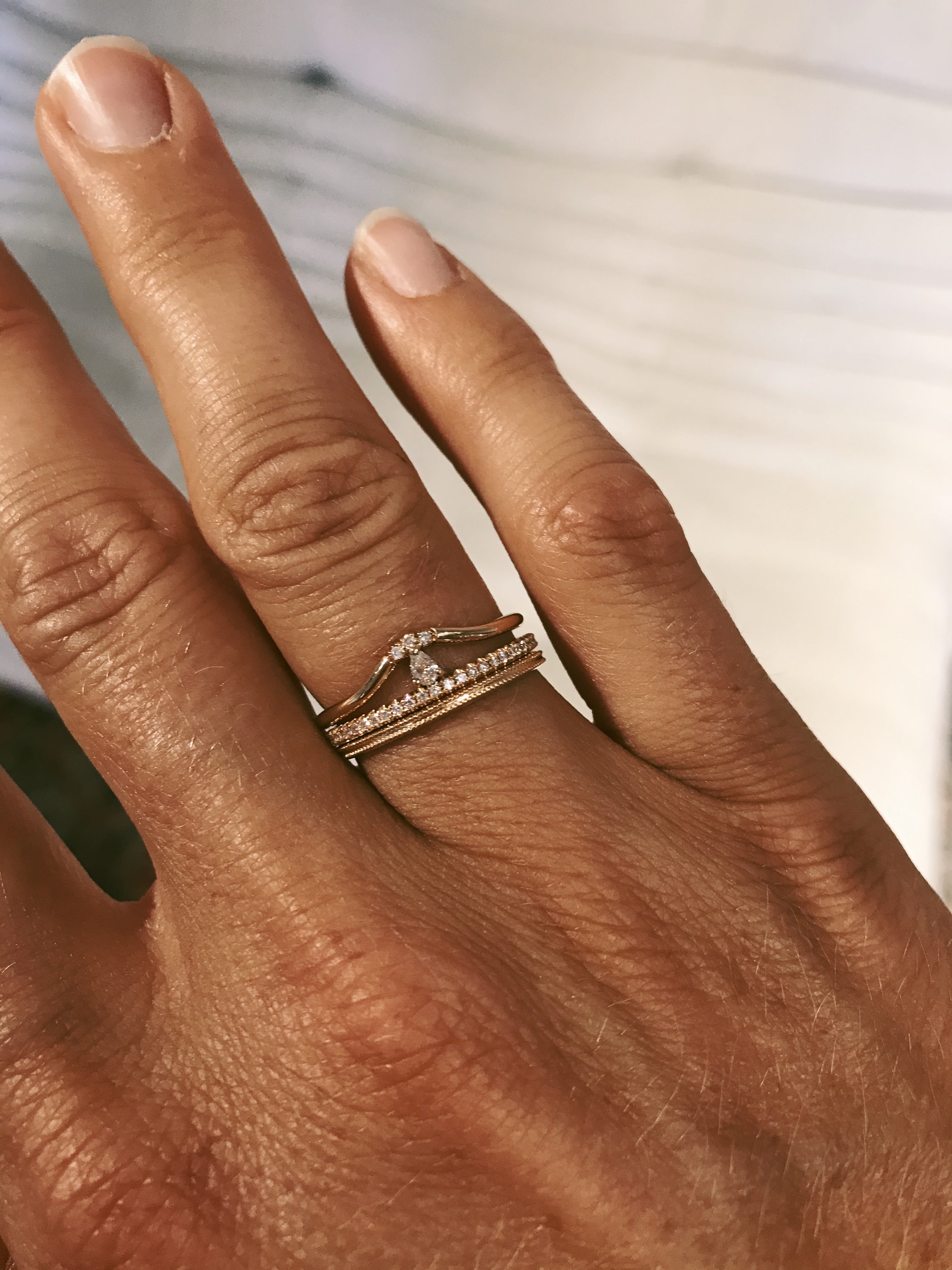 A lovely, delicate ring that is absolutely magic on top of a stack!