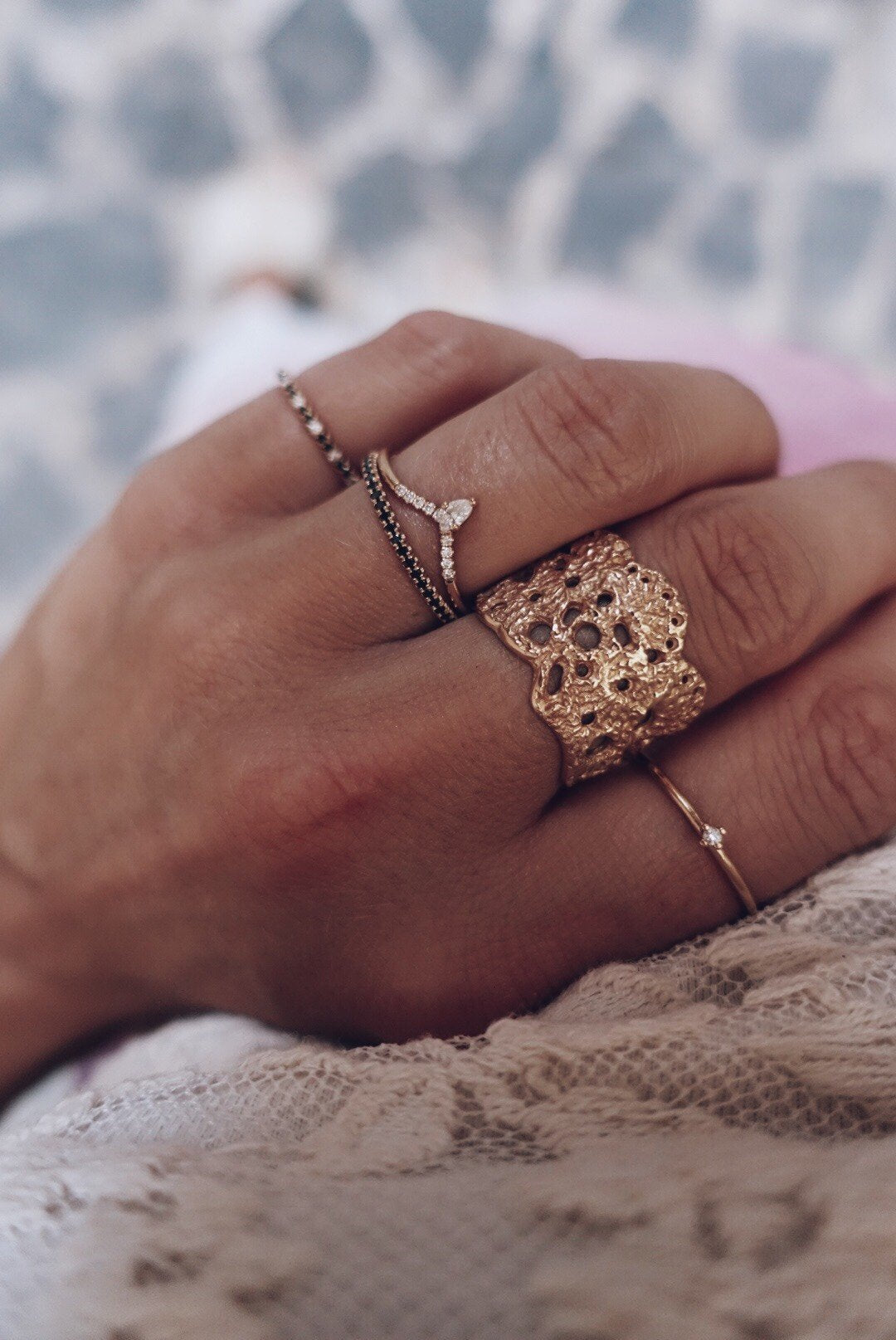 Lily was one of the first curved bands I ever designed - we launched it around 2016-2017. I still love it, and it still fits the same purpose: to be the perfect finisher in the top or bottom of any stack. The fantastic thing with a curved band is that it can be stacked with all other ring styles - be it cluster rings, side stone rings, eternity bands or solitaires! Xx Cecilia