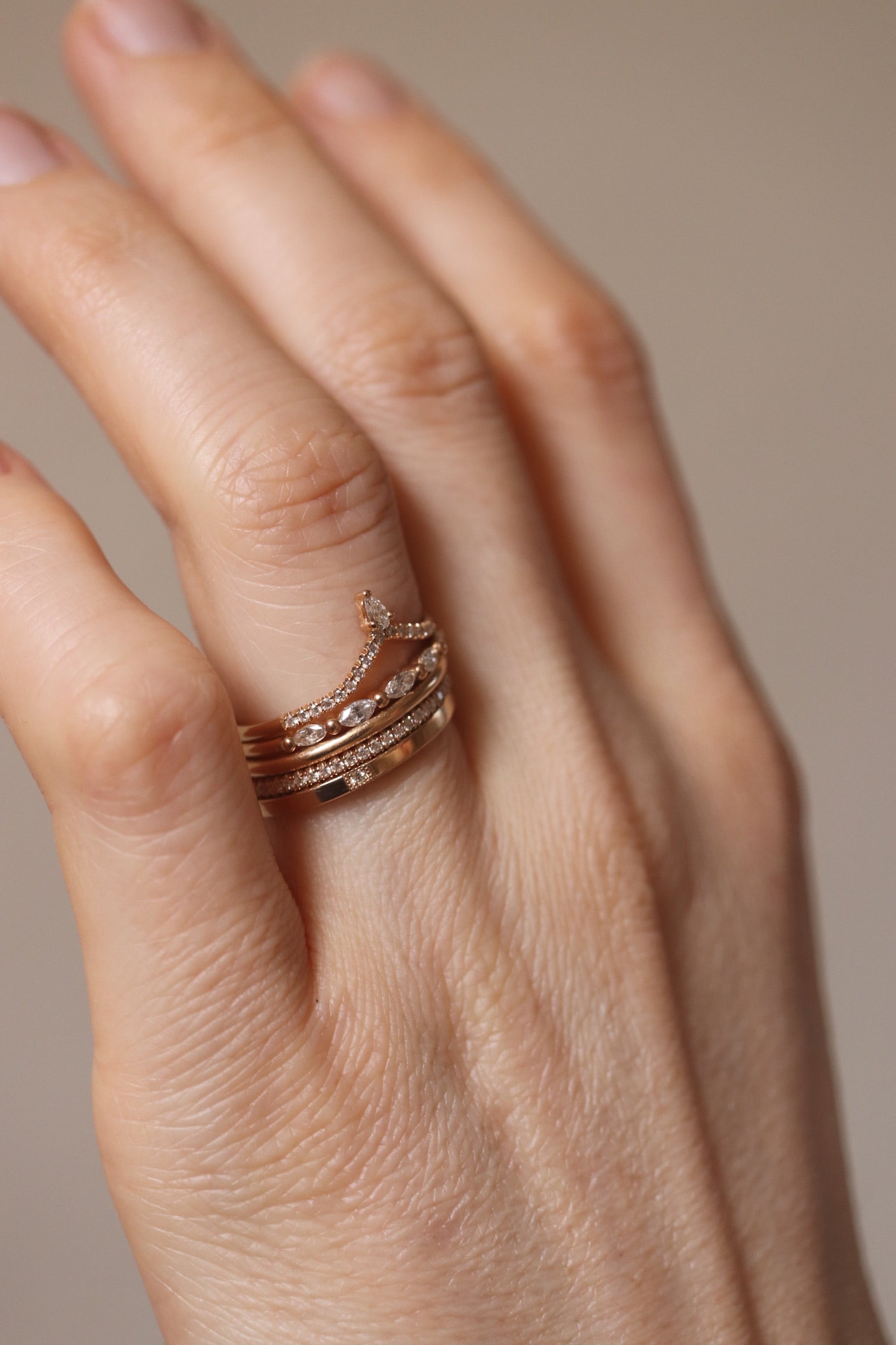 Lily was one of the first curved bands I ever designed - we launched it around 2016-2017. I still love it, and it still fits the same purpose: to be the perfect finisher in the top or bottom of any stack. The fantastic thing with a curved band is that it can be stacked with all other ring styles - be it cluster rings, side stone rings, eternity bands or solitaires! Xx Cecilia