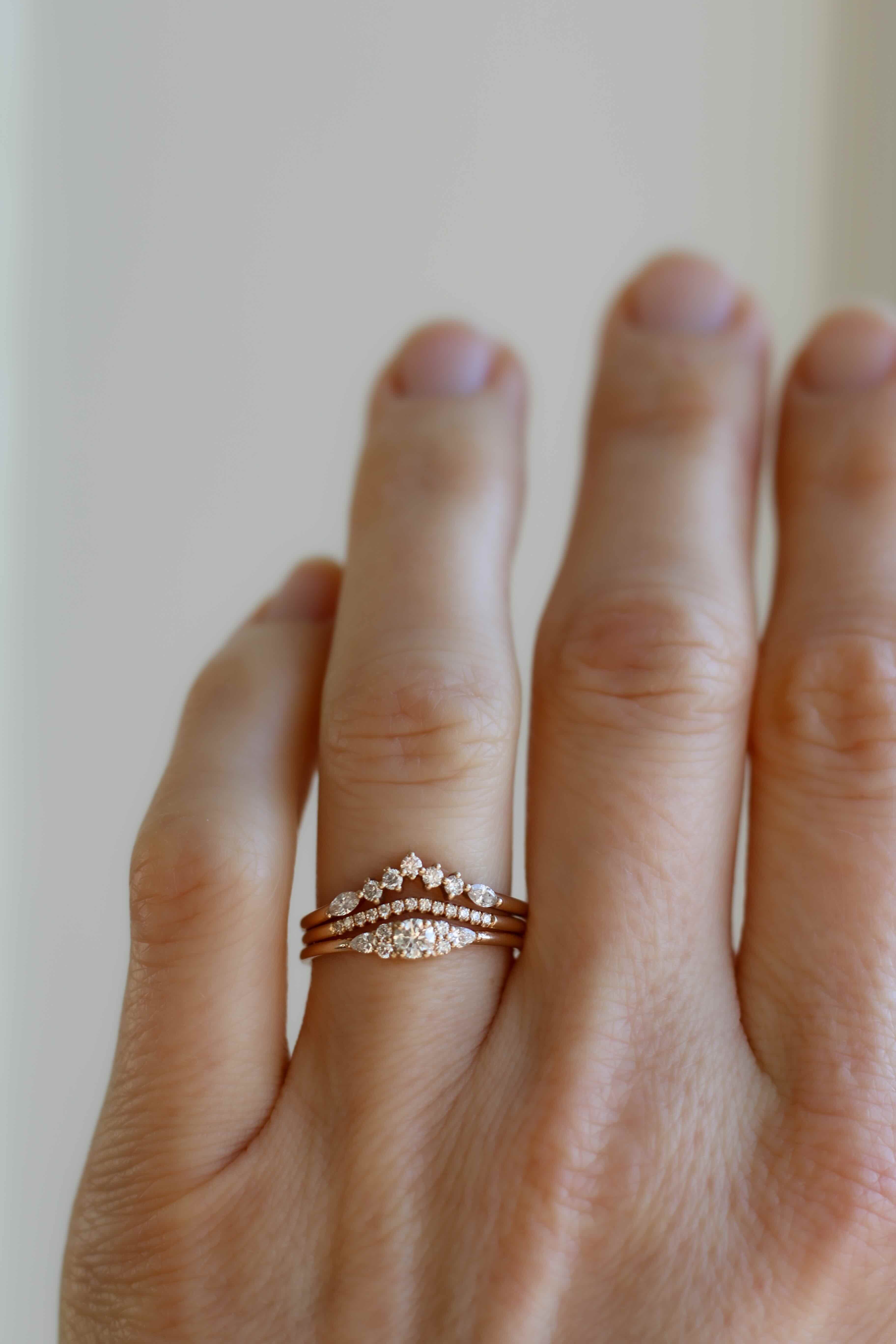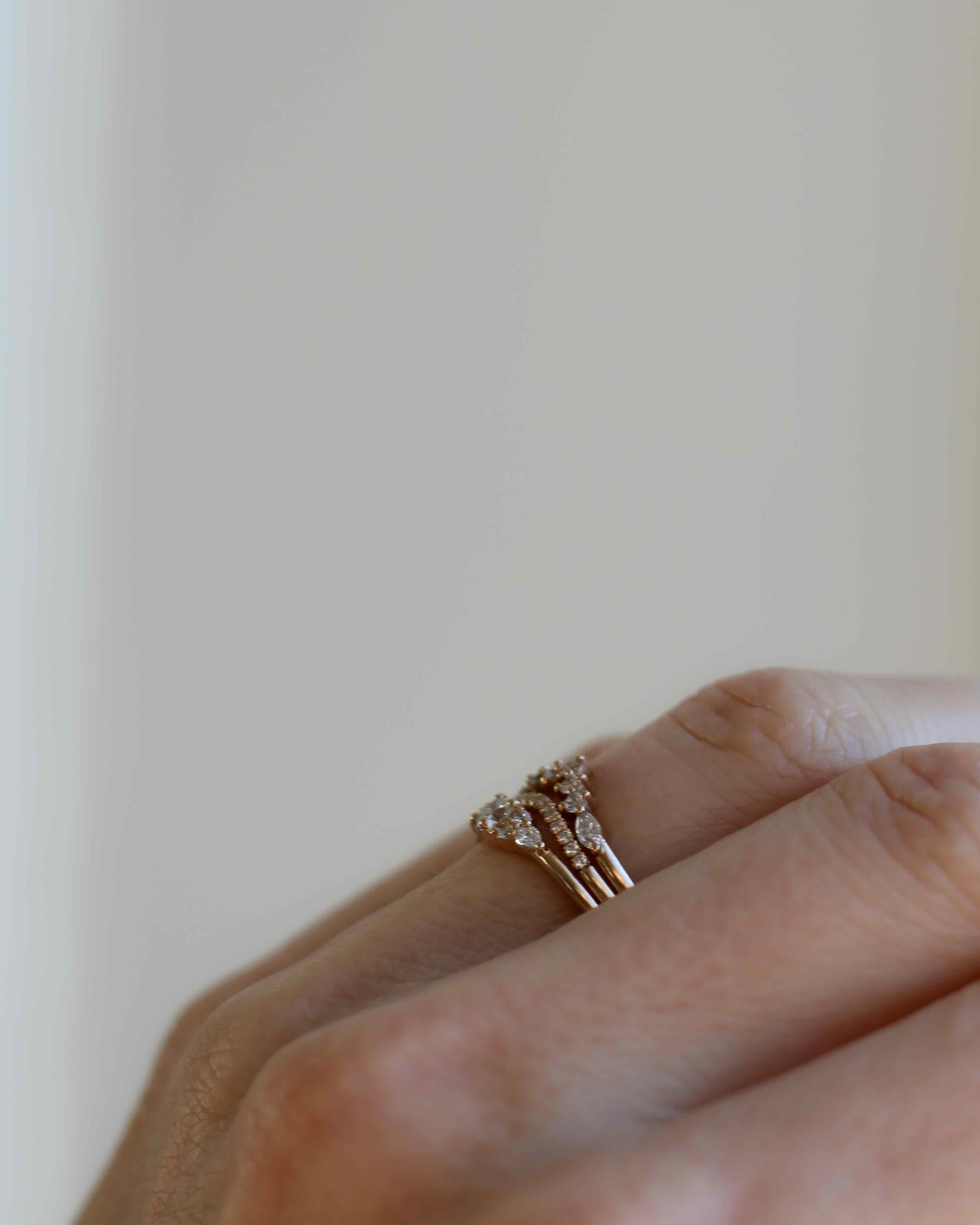 Denna ring är särskilt formgiven för att vara vacker i en stack och framhäva andra ringar! Många bär den ihop med våra sidostensringar, medan andra bär den som avslut i en ring stack med eternity bands, guldband och solitärringar.