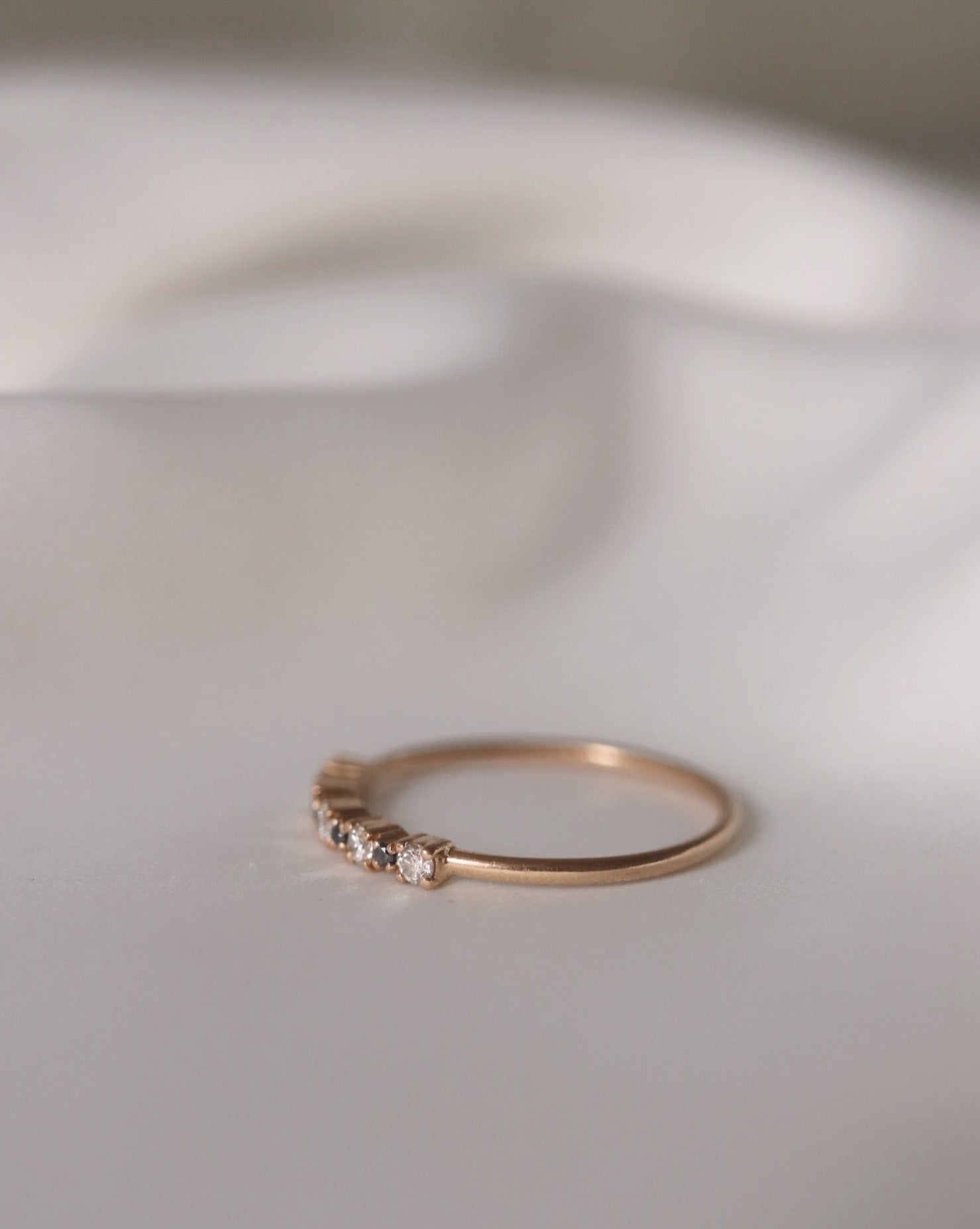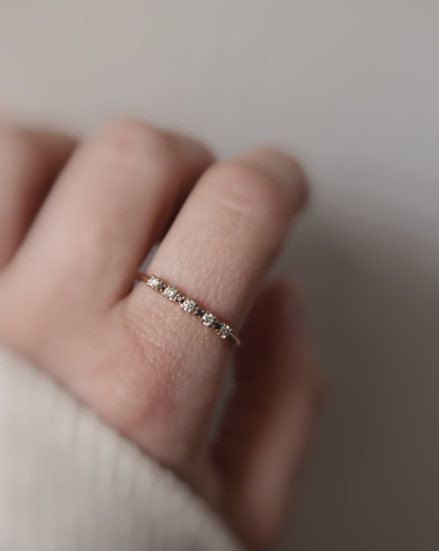 Mini Brigitte Ring with Black and White Diamonds Reversed