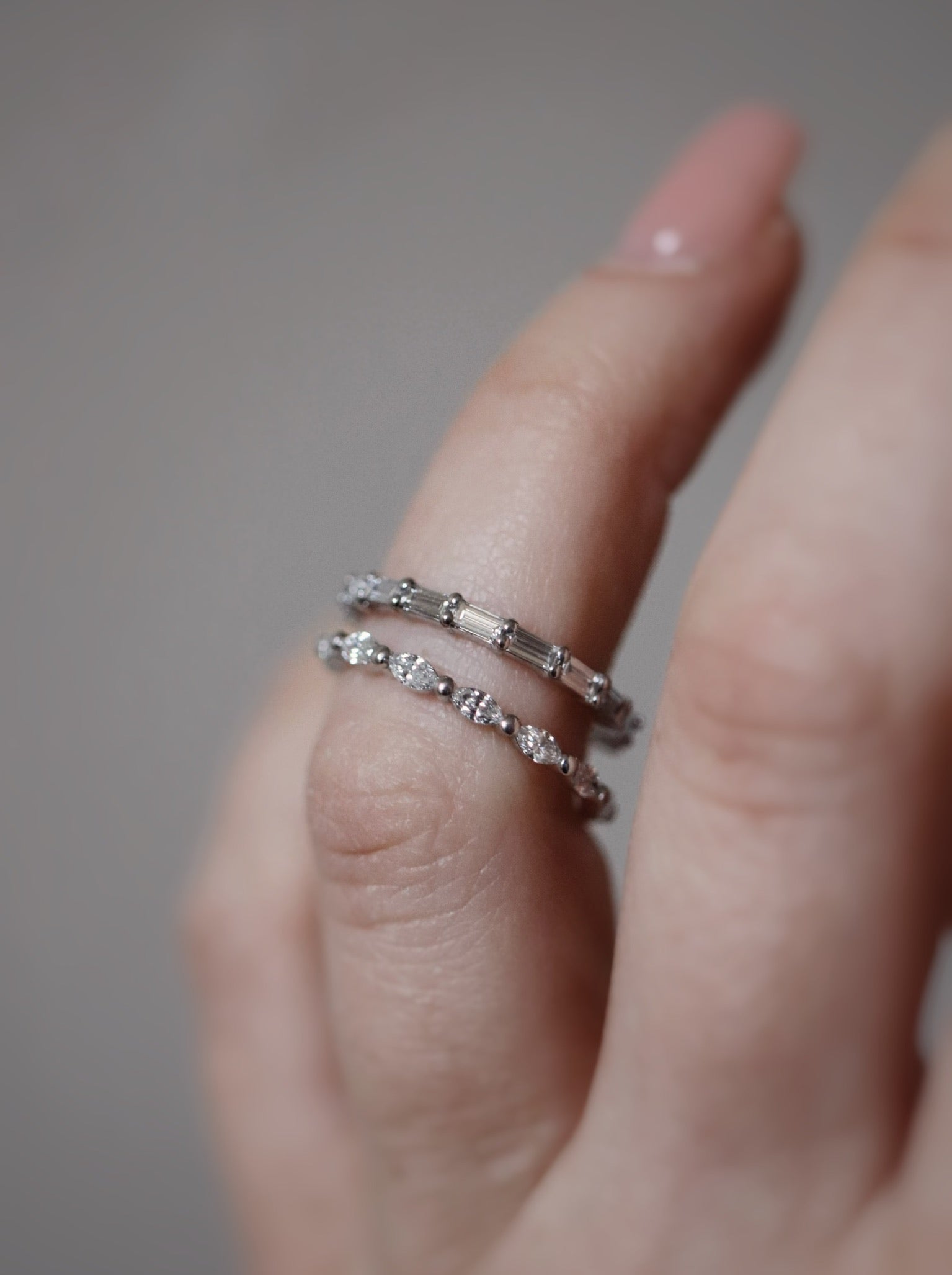 Ca 17 baguettediamanter där varje diamant väger cirka 0.05 CT (totalt ca 0.85 CT). Totalt antal diamanter kan variera med ringstorlek.