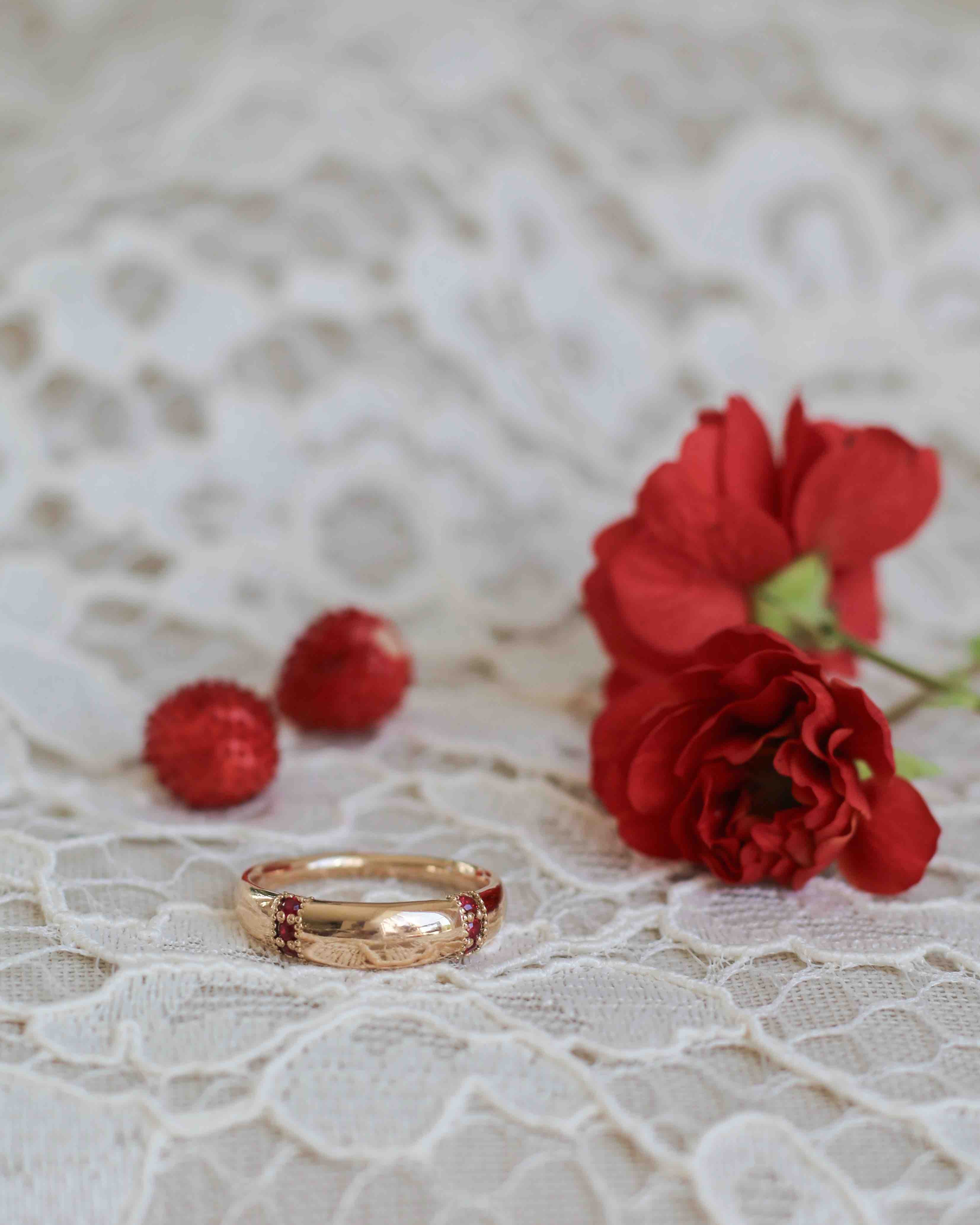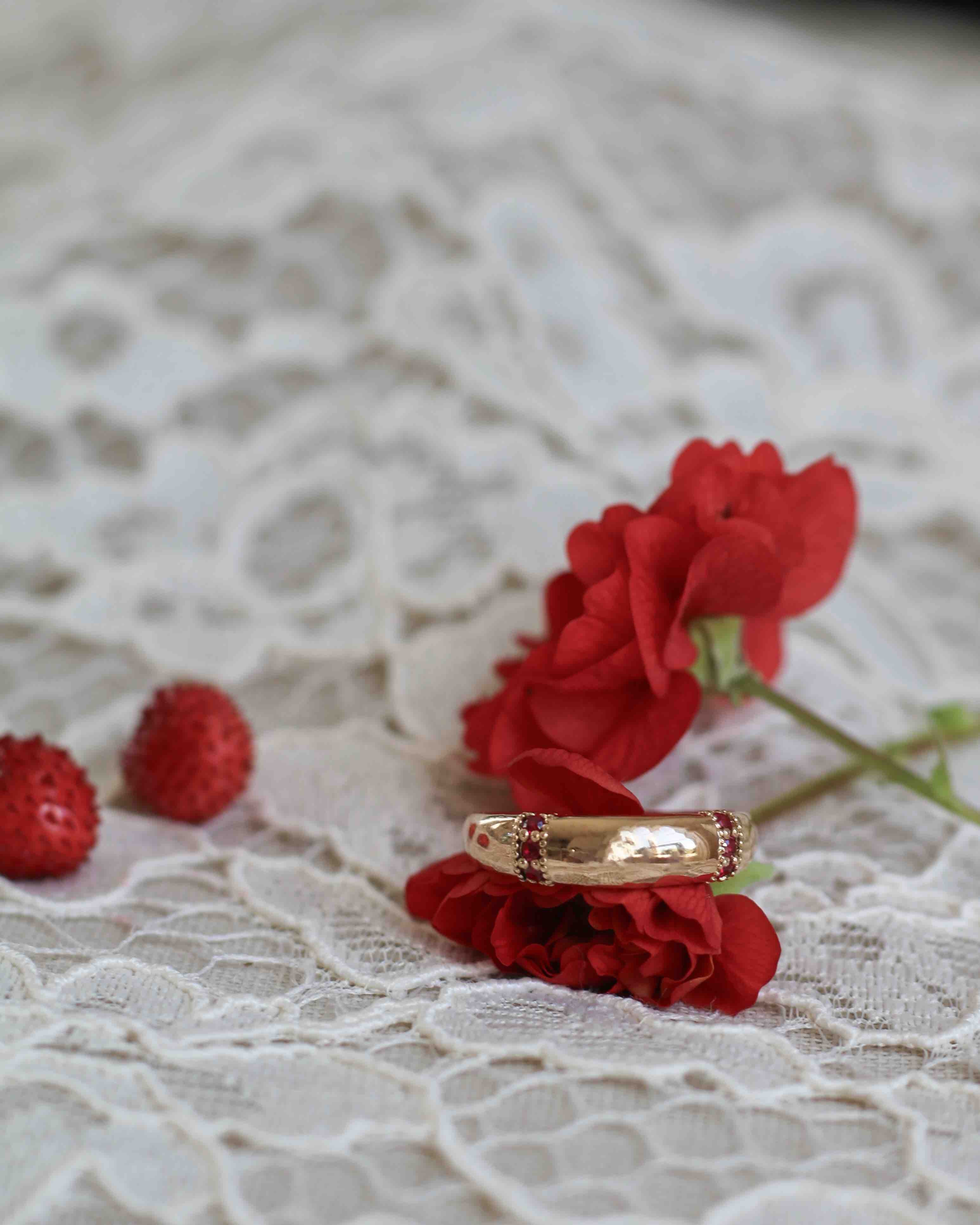 Nonna's Dome Ring med Rubiner