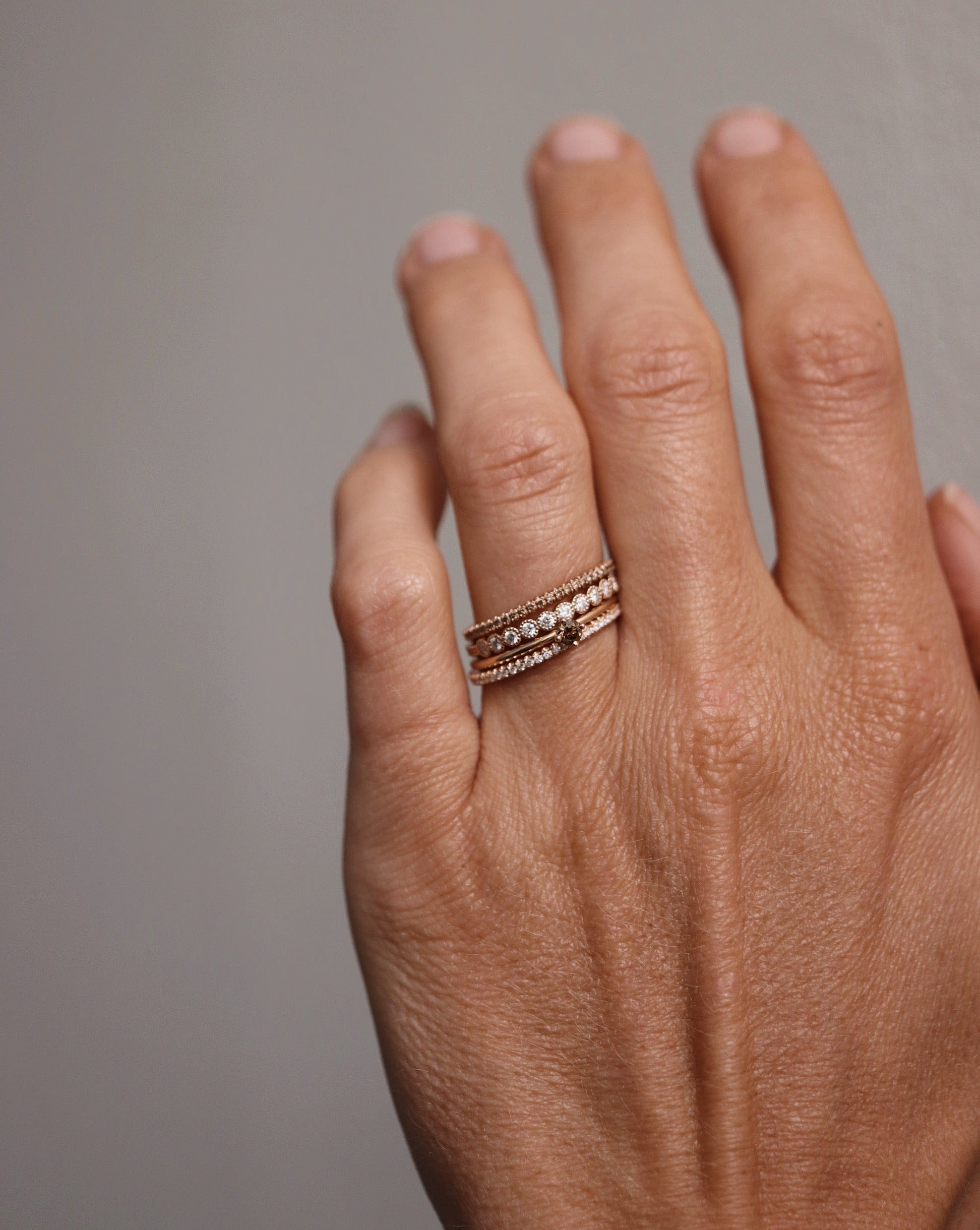 In the first picture you see (from left to right) Not So Tiny Ring with natural diamond, champagne diamond, dark chocolate diamond and chocolate diamond!