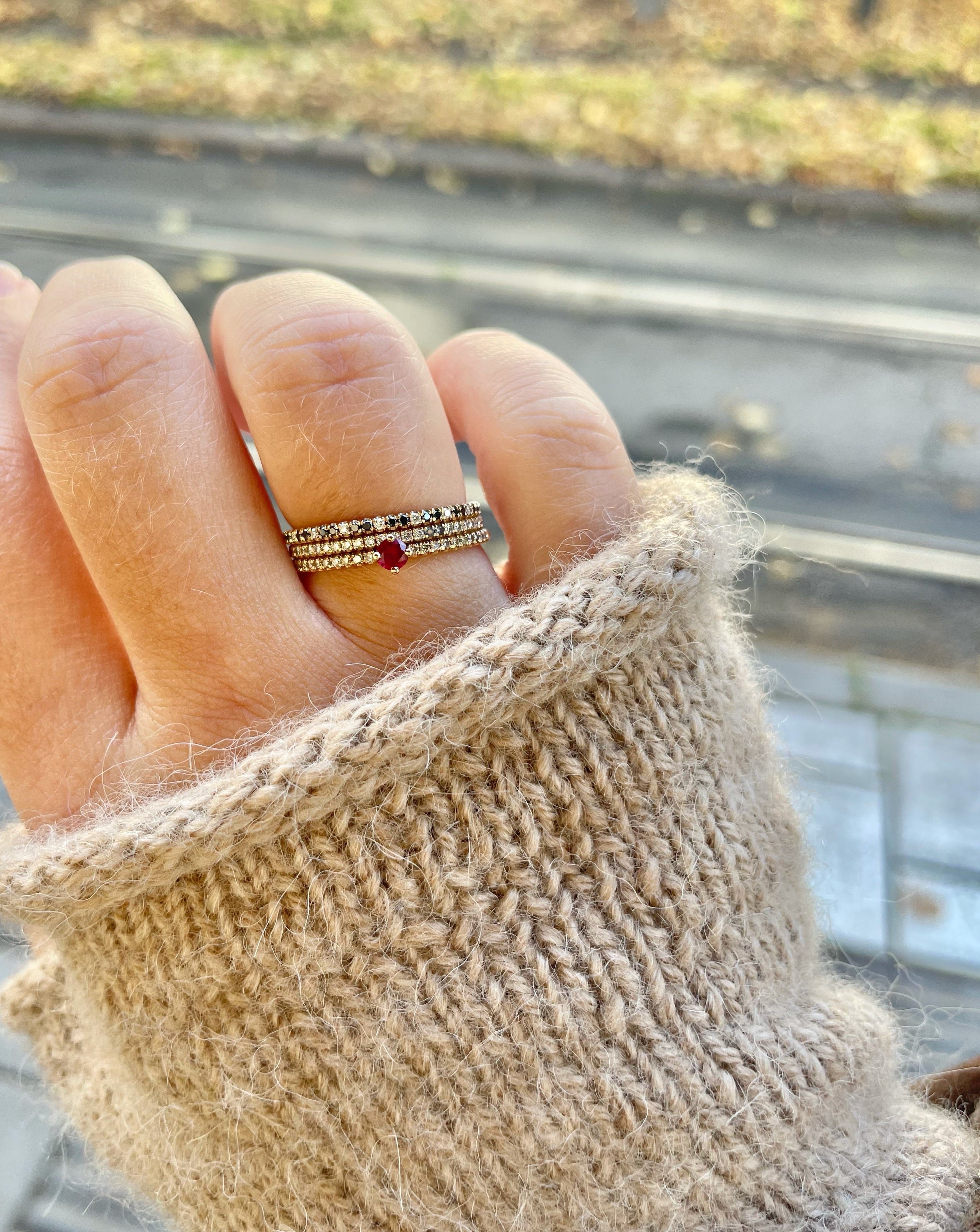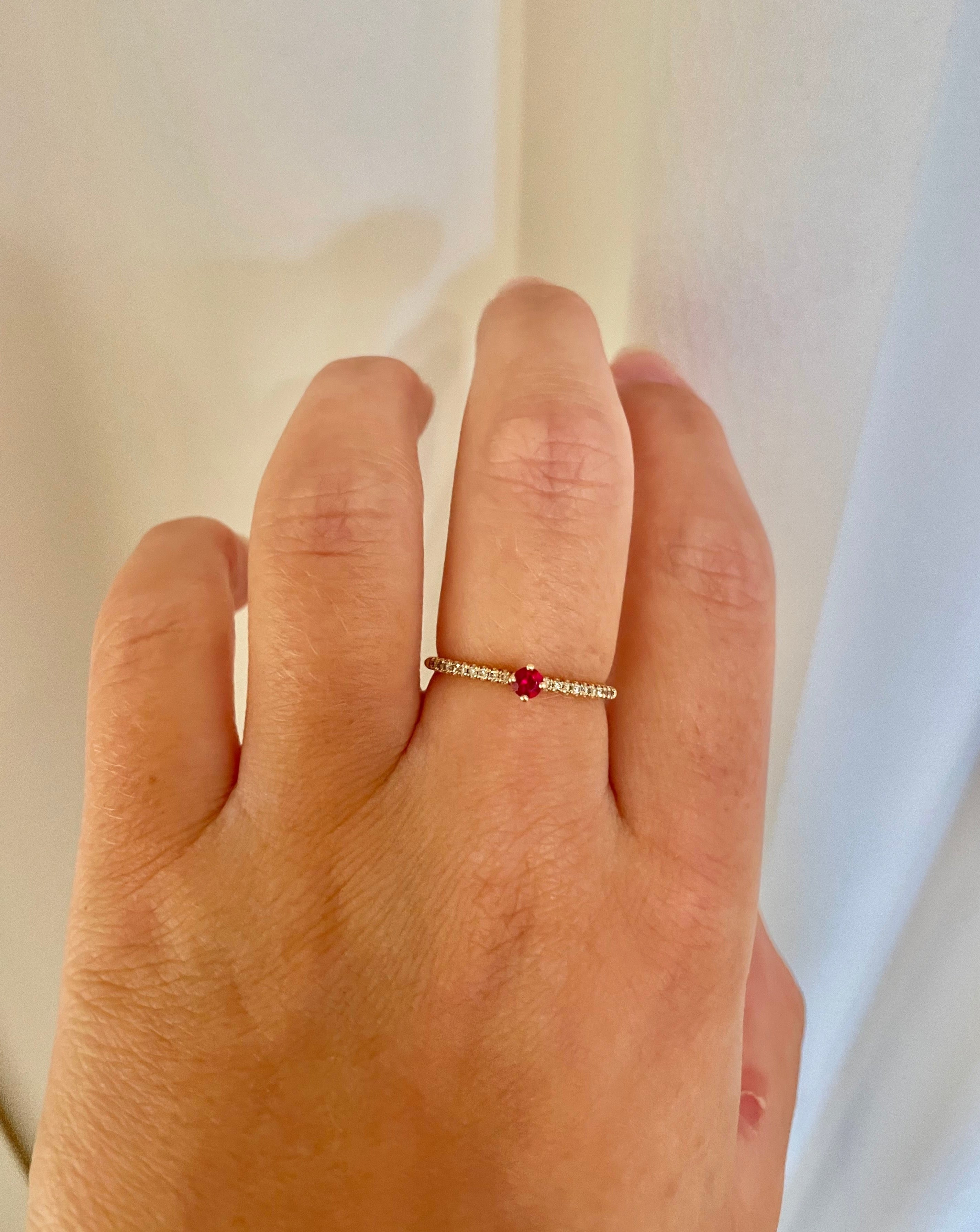I first created this version on Not So Tiny Sparkle Ring for myself, to wear daily on my middle finger. As a gemstone enthusiast, I'm always on the hunt for magical gemstones when I create new jewelry pieces. For this ring, I wanted a true red ruby (you know, that perfect shade of red that is not too orange and not too pink!) with a cut that gives the gemstone lots of sparkle. The stunning rubies that we have sourced for this model check all the boxes, and I am so happy with the result!