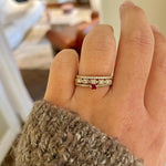 This ring is beautiful worn alone on the ring finger or middle finger. It also stacks beautifully with most other rings.