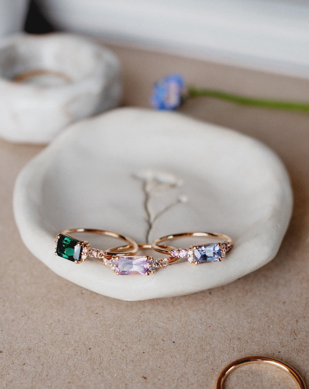 Ringar med ädelstenar: standard produktionstid 6-7 veckor.