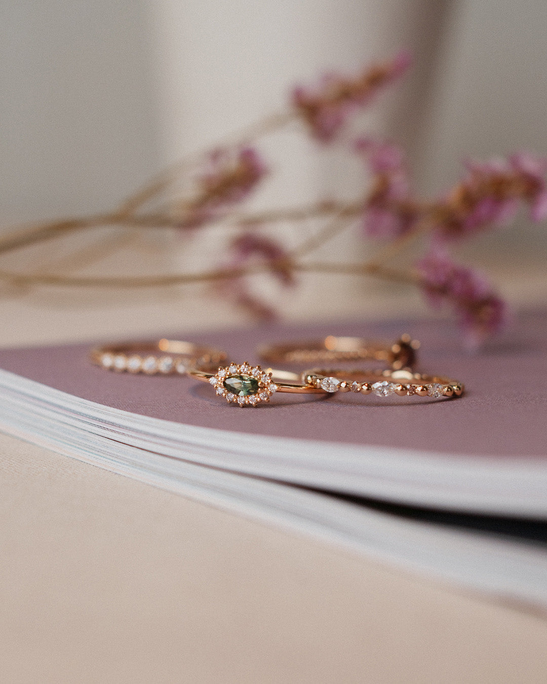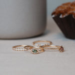 Ringar med ädelstenar: standard produktionstid 6-7 veckor.